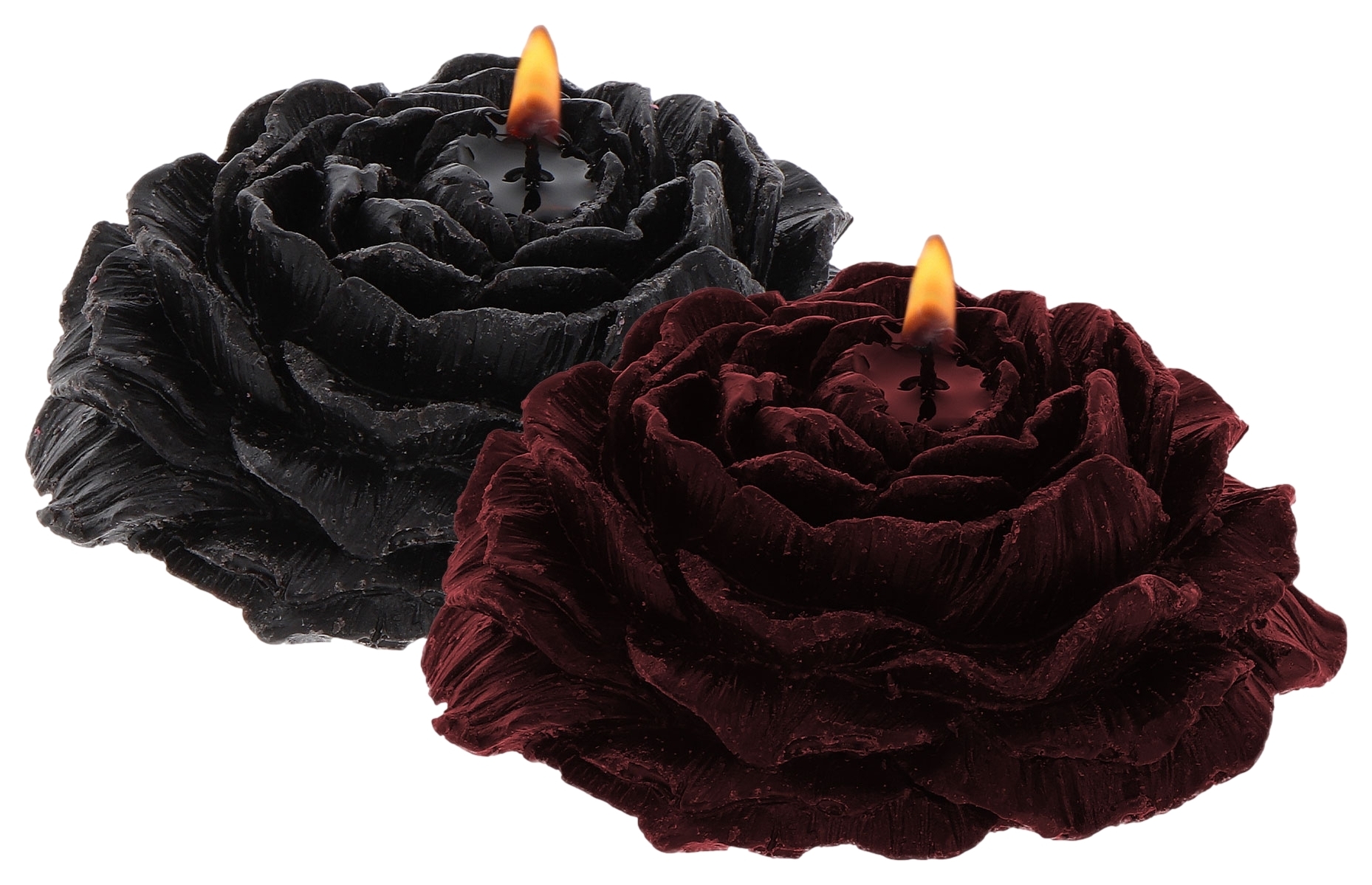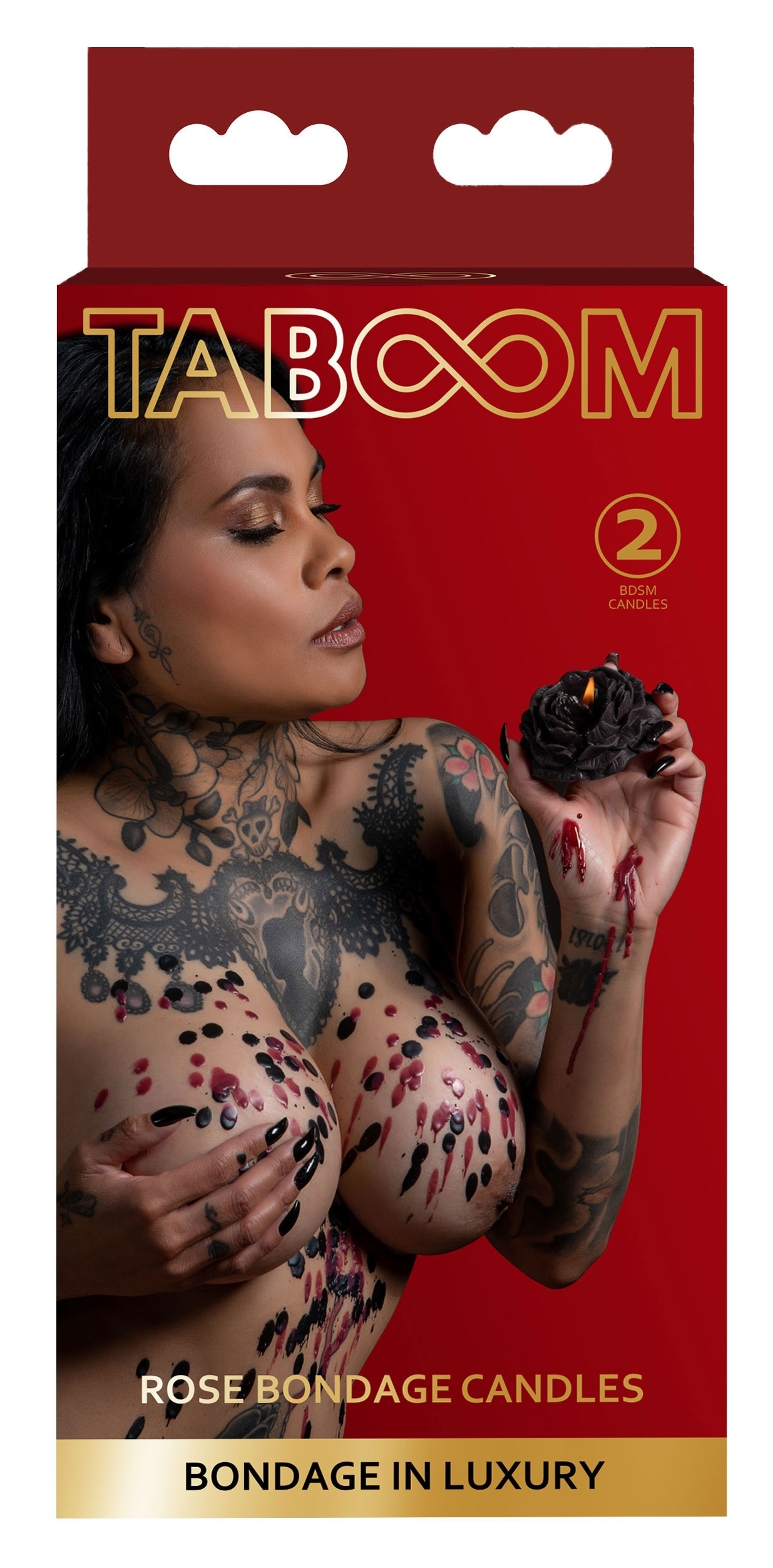 Ces 2 bougies de la marque Taboom ont une forme de rose et permettent la production de cire chaude mais non brûlante. 1 bougie noire et 1 bougie rouge foncé. Dimensions : 7 x 7cm