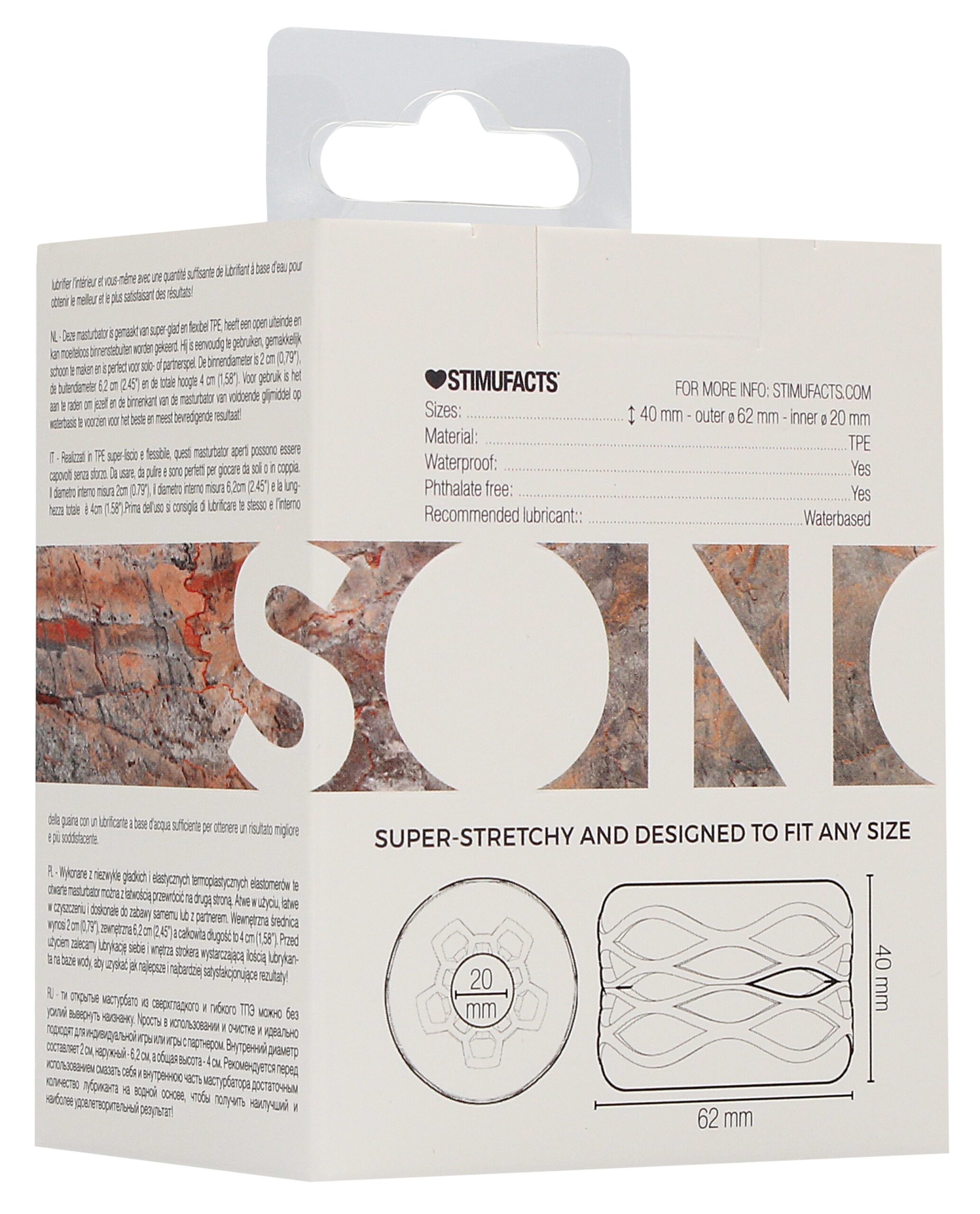 Cet anneau de masturbation est proposé par la marque Sono. Il se compose d’une hauteur de 4cm et d’un diamètre intérieur de 20mm étirable.La surface est texturée et l’anneau est réversible.La matière est souple, douce et extensible. L’anneau glisse le long du sexe pour des sensations intenses et excitantes. En matière TPE