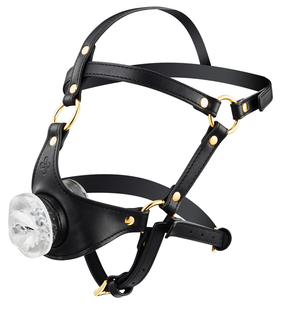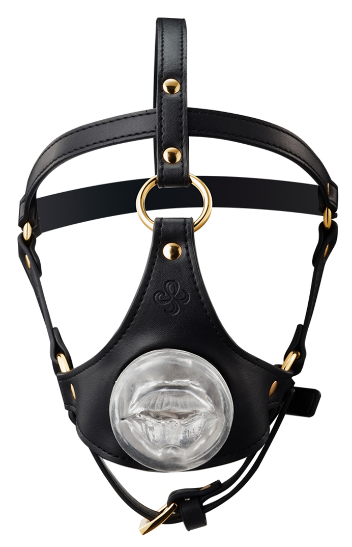 Bâillon avec une ouverture au niveau de la bouche de 40 mm de diamètre. Masturbateur transparent entrée bouche, d’un diamètre intérieur de 30 mm. Ajustables de 43 à 53 cm pour la nuque et de 54 à 64 cm pour l’arrière de la tête. Masturbateur silicone, attaches en zinc, le reste en simili.