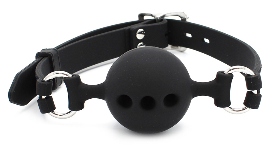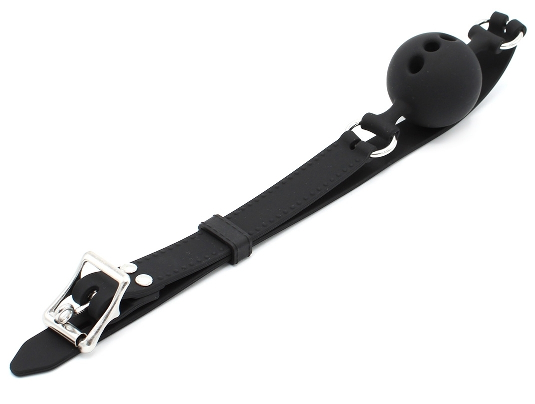 Ce bâillon-boule Ball Gag est composé d’une boule percée de 43mm de diamètre et d’un ajustable tour allant de 37 à 54cm. En silicone