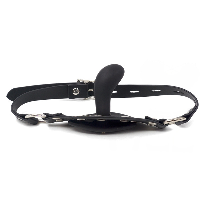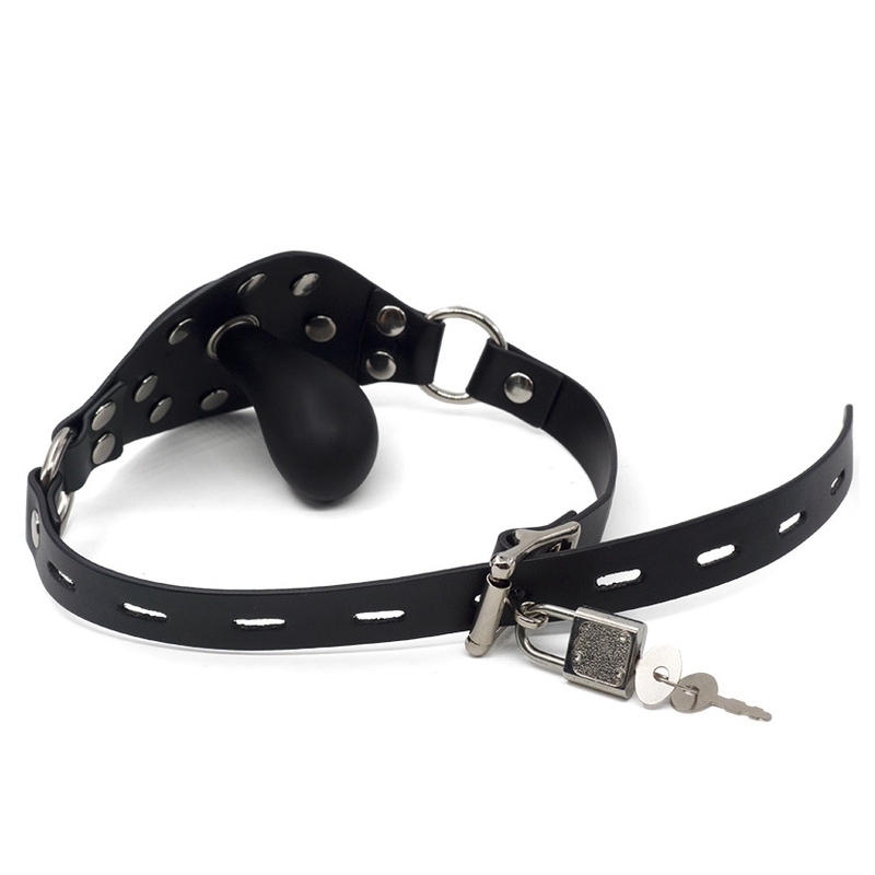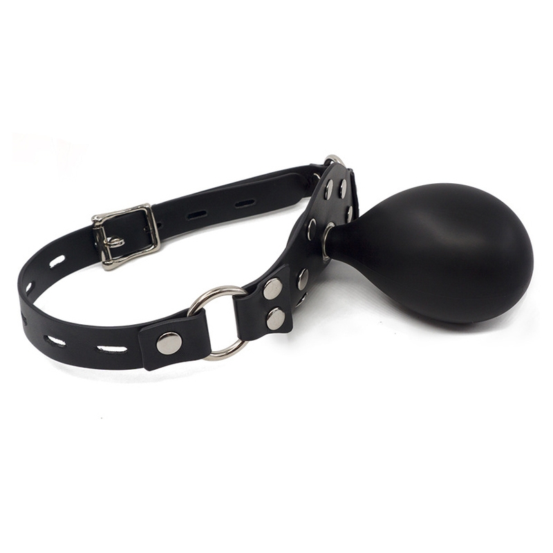 Bâillon gonflable avec un gonfleur amovible.Sangles ajustables (en simili) de 36 à 59 cm. Profondeur du bâillon de 6 cm. En silicone