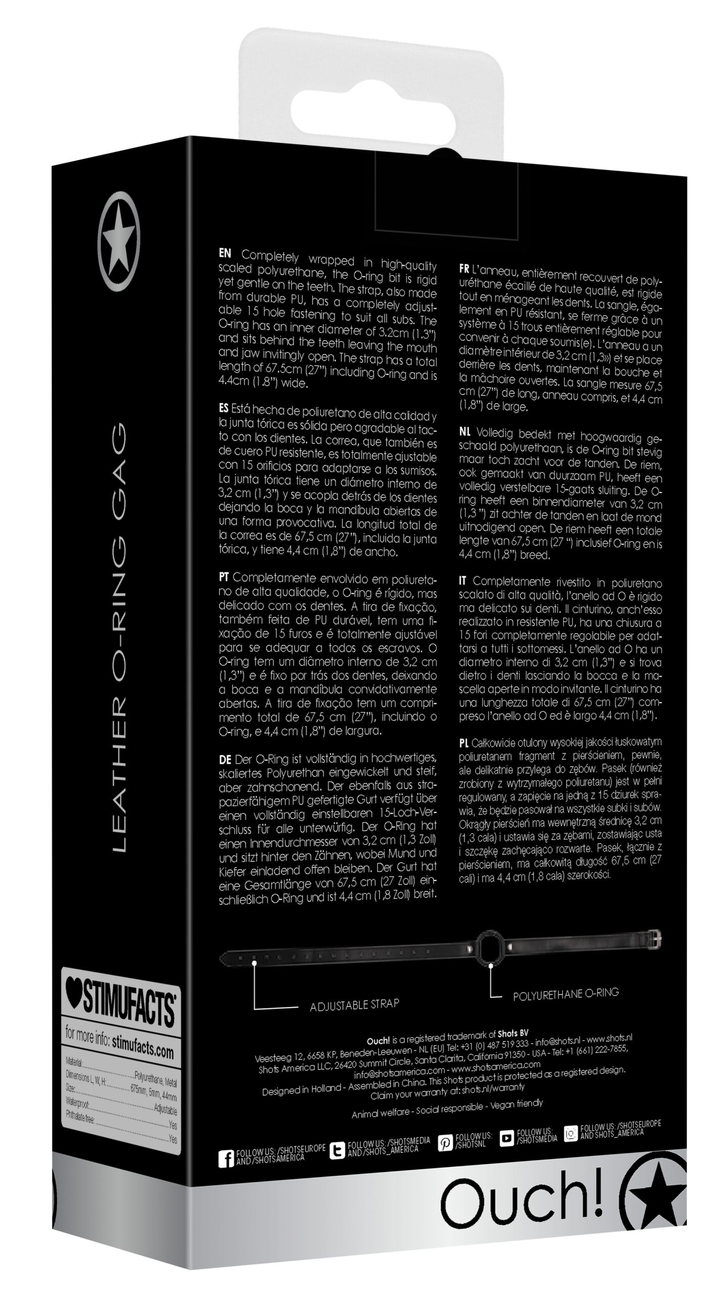 Ce bâillon O-Ring est un accessoire de la marque Ouch! idéal pour les moments les plus coquins. Il se compose d’un anneau de 37mm de diamètre permettant de laisser la bouche du ou de la partenaire ouverte.Avec une sangle ajustable. Fabriqué en polyuréthane