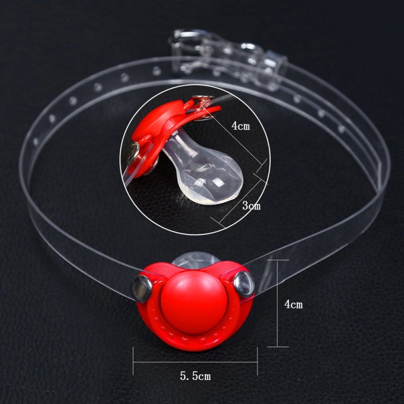Bâillon en forme de tétine de bébé idéal pour les soumis.Profondeur de 4.5 cm. Attache avec une sangle ajustable. Tour de tête 47 à 65 cm En PVC