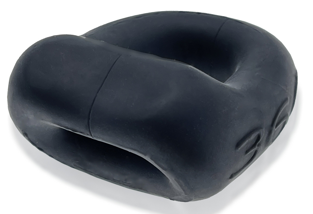 Ballstretcher avec une forme épaisse et une efficacité ferme.Ouvertures de 25 mm et 15 mm étirables pour serrer la base du pénis et le dessus des bourses. En matière silicone + TPR.