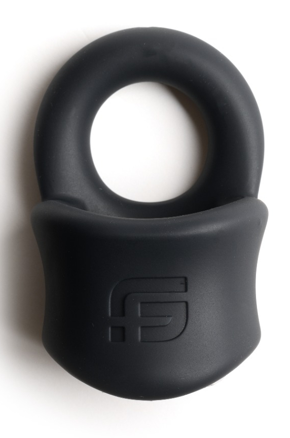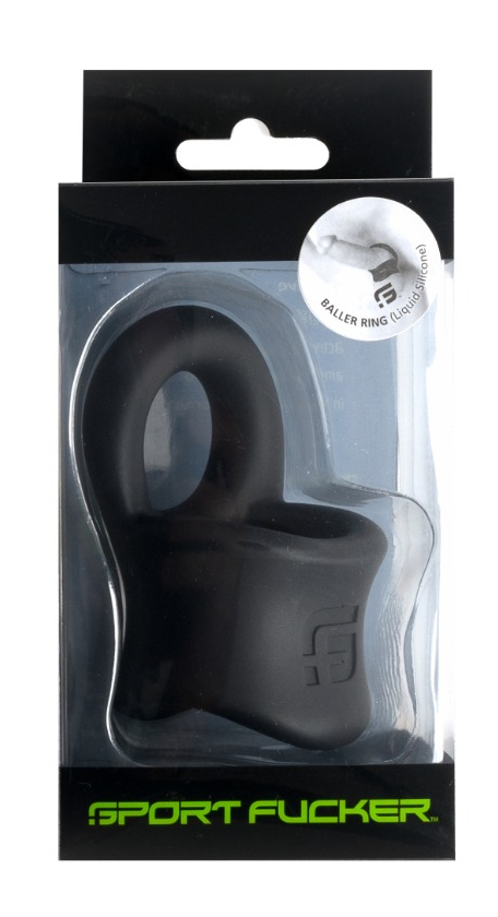 Ballstretcher noir avec deux ouvertures pour le pénis (25 mm) et pour les bourses (32 mm).Hauteur de 35 mm. Matière silicone + TPR.