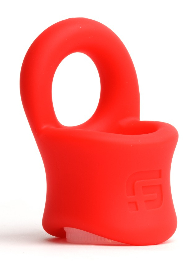 Ballstretcher rouge avec une hauteur de 35 mm. Le diamètre est de 32 mm étirable.Anneau pour le pénis d’un diamètre de 25 mm. En silicone + TPR
