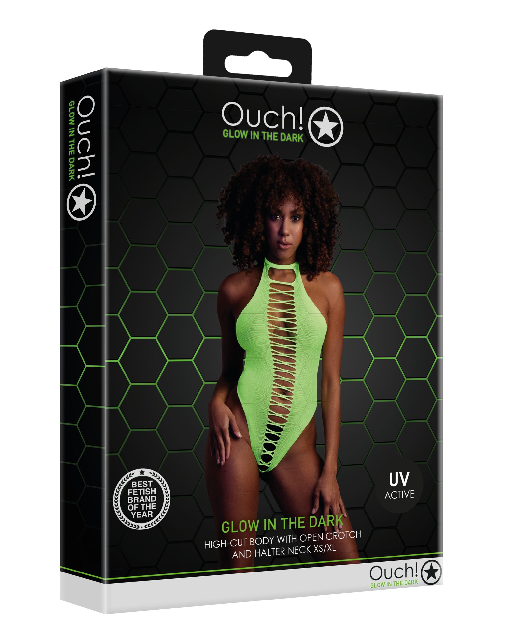 Body échancré ouvert à l’entrejambe avec dos nu Vert Fluo