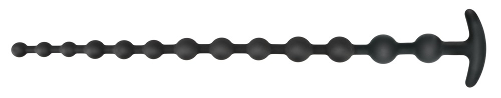 Longueur de 48 cm pour aller profondément.La largeur va de 1.6 à 3 cm au fur et à mesure de l’insertion des différentes boules.La structure est souple. En silicone.