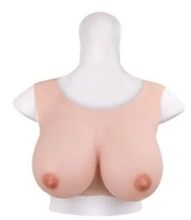 Buste avec des faux seins en coton, pour un rendu de bonnet B. Taille S à L. Largeur de 29 cm et hauteur de 26 cm. Poids de 880 grammes. En silicone