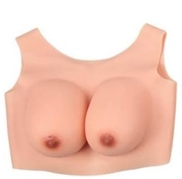 Faux seins de bonnet E, d’une largeur de 34 cm et hauteur de 25 cm. Taille S à L. Poids de 2.750 kg En silicone.
