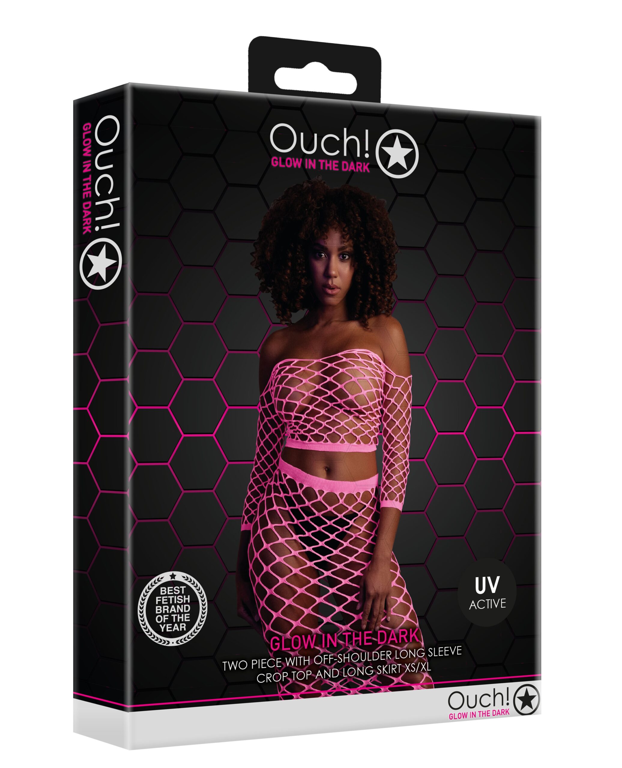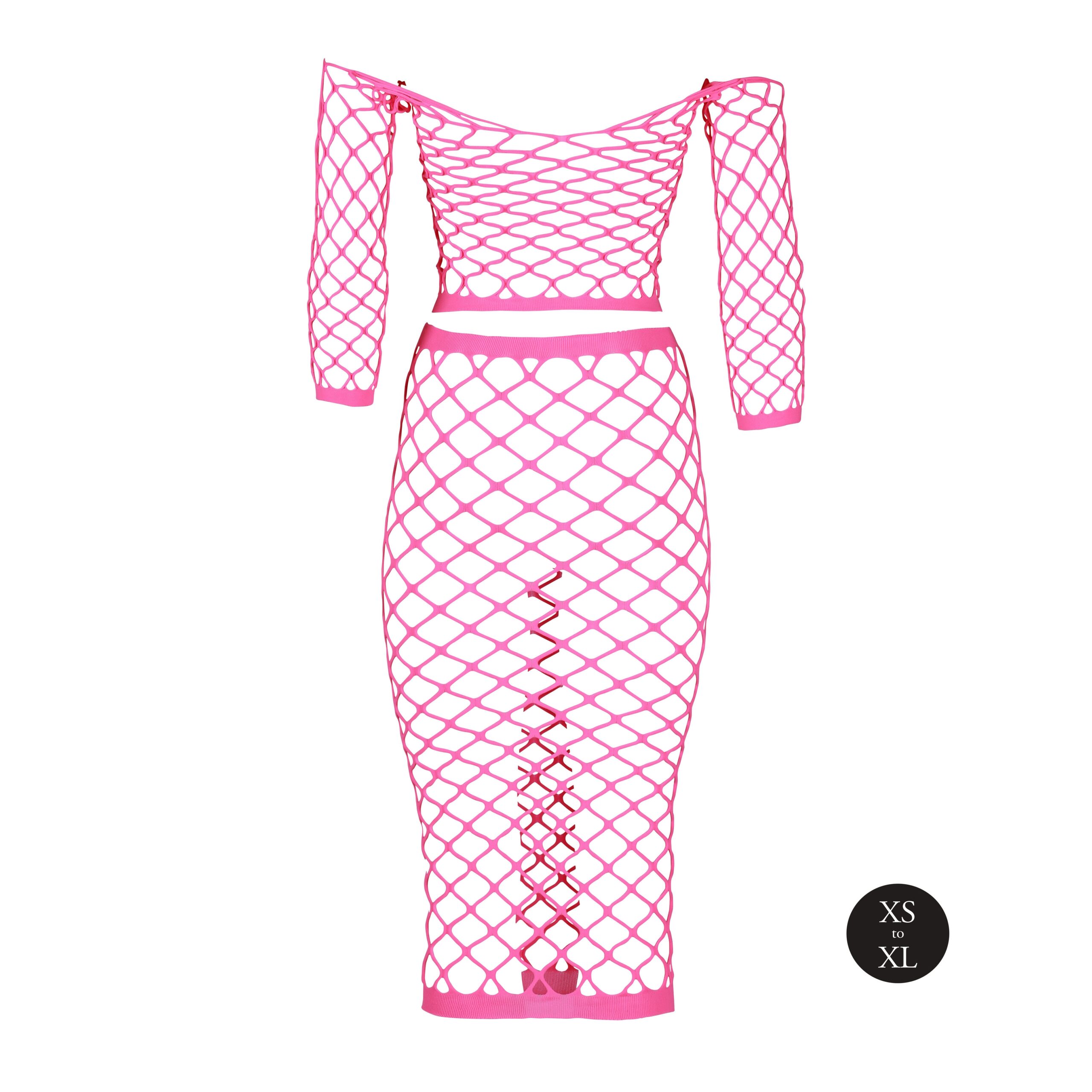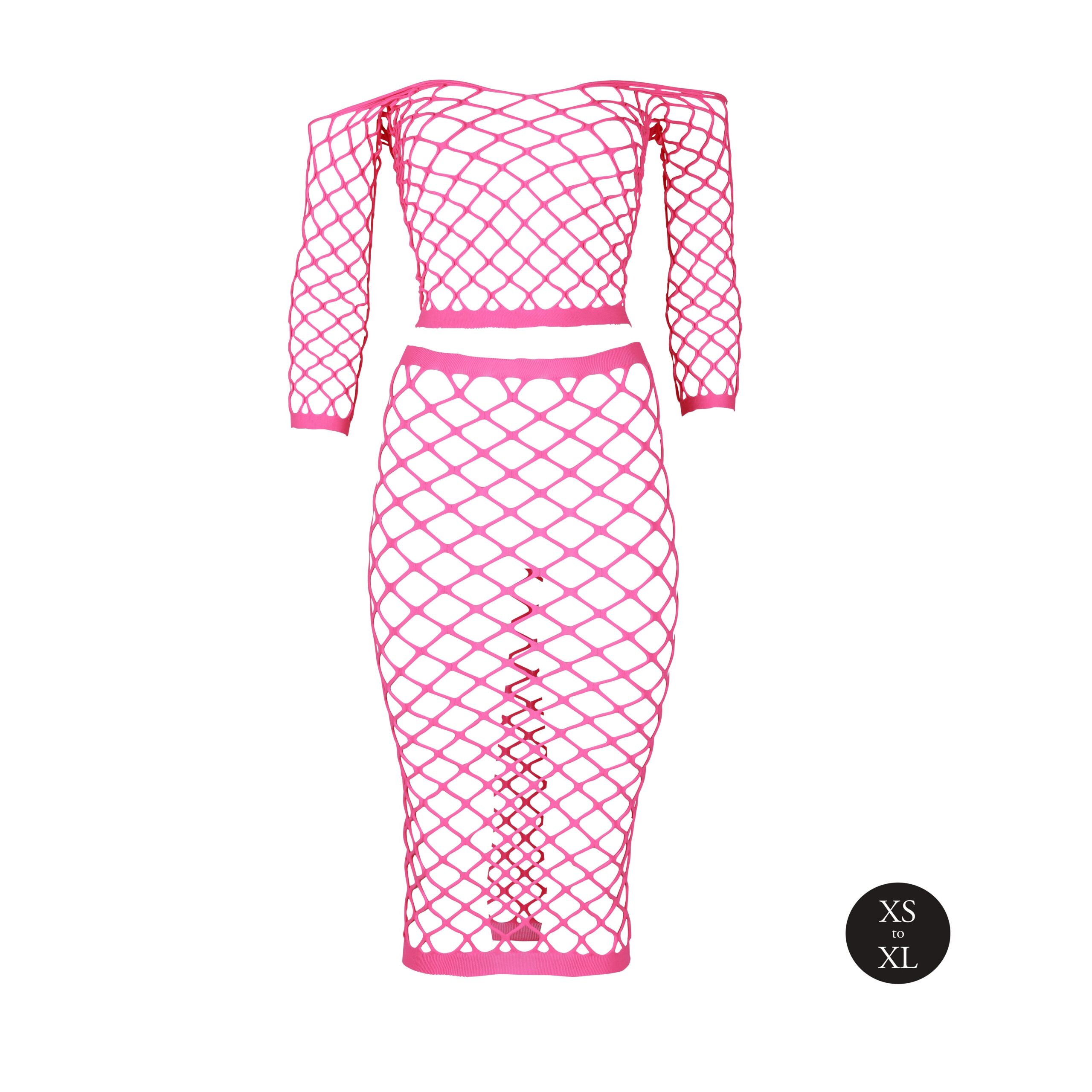 Bustier et Robe Filet Épaules dénudées Rose Fluo