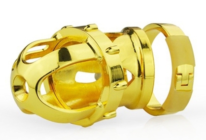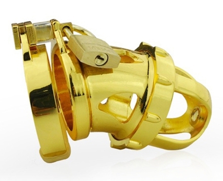 Cette cage de chasteté dorée est composée de: la cage en elle-même de 7cm de longueur et de 3.4cm de largeur la tige pour l’urètre de 4.5cm de longueur et de 8mm de diamètre. Elle est percée l’anneau de fixation de 52mm et son cadenas. Belle forme excitante pour une soumission totale ! Elle est fabriquée en métal