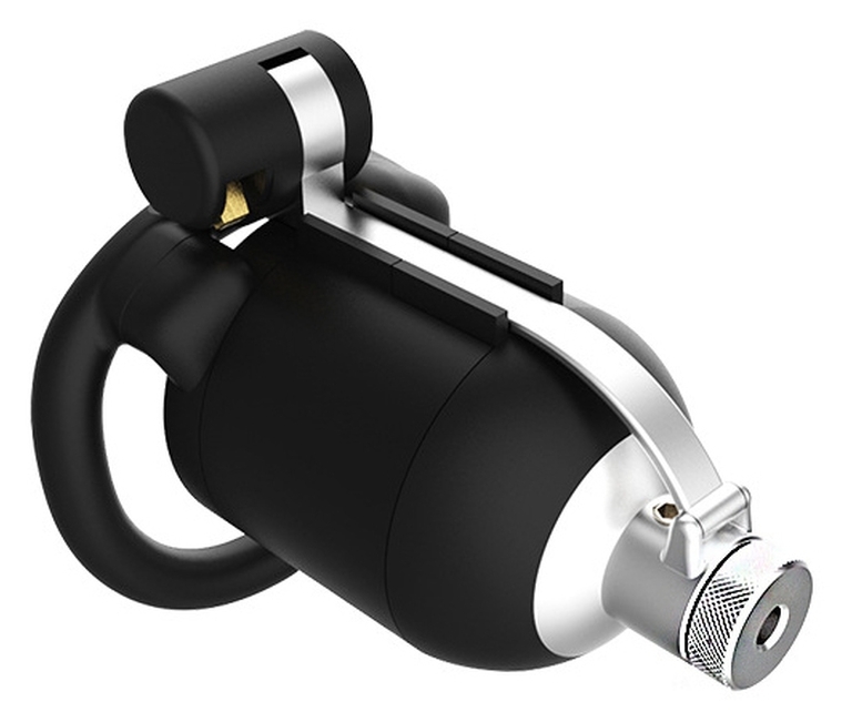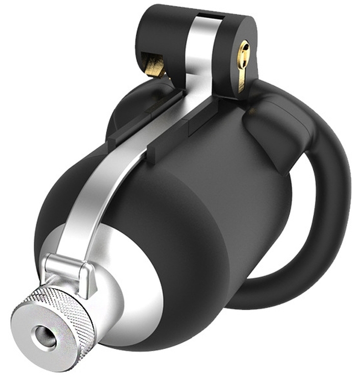 Cage de chasteté rigide, avec pics, et tige d’urètre percée de 6 mm de diamètre pour 5.5 cm de long. Longueur insérable de 6 cm par 3 cm de large. 4 anneaux courbés d’un diamètre de 4.2 à 5.2 cm En plastique ABS, avec un cadenas à clé et cadenas numérotés.