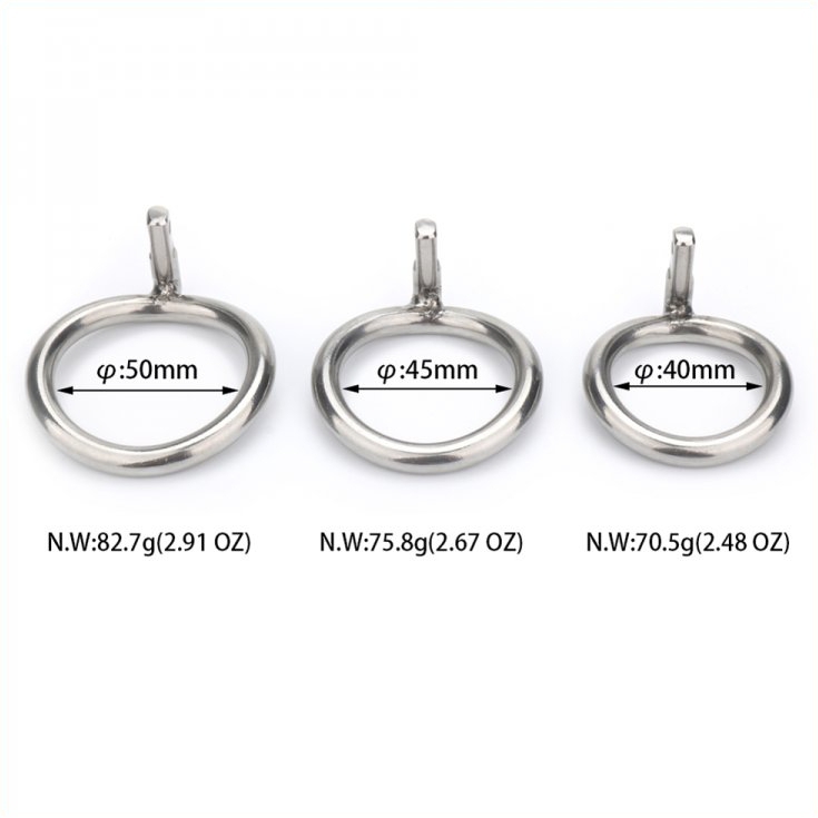 Cette cage de chasteté est fabriquée en métal avec des anneaux successifs qui viennent entourer le pénis.Elle permet de limiter l’érection et rendre le partenaire encore plus soumis. La longueur est de 8cm. Le diamètre intérieur est de3.5cmAvec un anneau de fixation (diamètre à choisir)