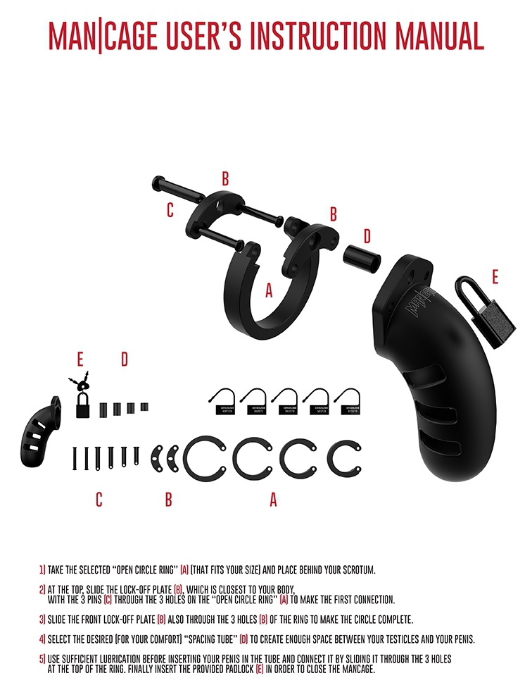 Cette cage de chasteté de la marque ManCage est fabriquée en silicone. Elle est souple et permet un meilleur confort.Elle mesure 11.5cm de longueur et le diamètre intérieur est de 3.5cm.Avec 4 anneaux de fixation dont les diamètres vont de 45 à 60mm de diamètre.Avec le cadenas et les fermetures de contrôle