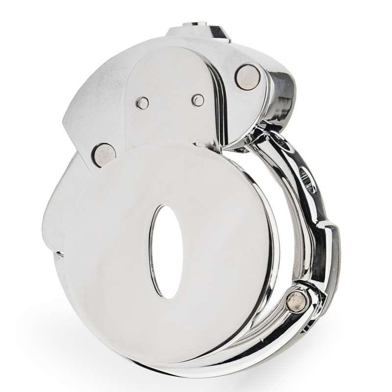 Cage de chasteté avec des dimensions réduites pour empêcher l’érection. Longueur de 2.5 cm et largeur de 3.2 cm. Avec un diamètre de serrage ajustable de 32 à 45 mm. Avec deux clés. En métal