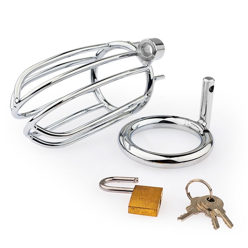 Cage de chasteté avec une forme composée de lignes fines.Longueur d’insertion de 9.5 cm. Diamètre intérieur de 3.5 cm. Anneau de maintien à choisir : 40, 45 ou 50 mm. Fermeture avec cadenas. En métal