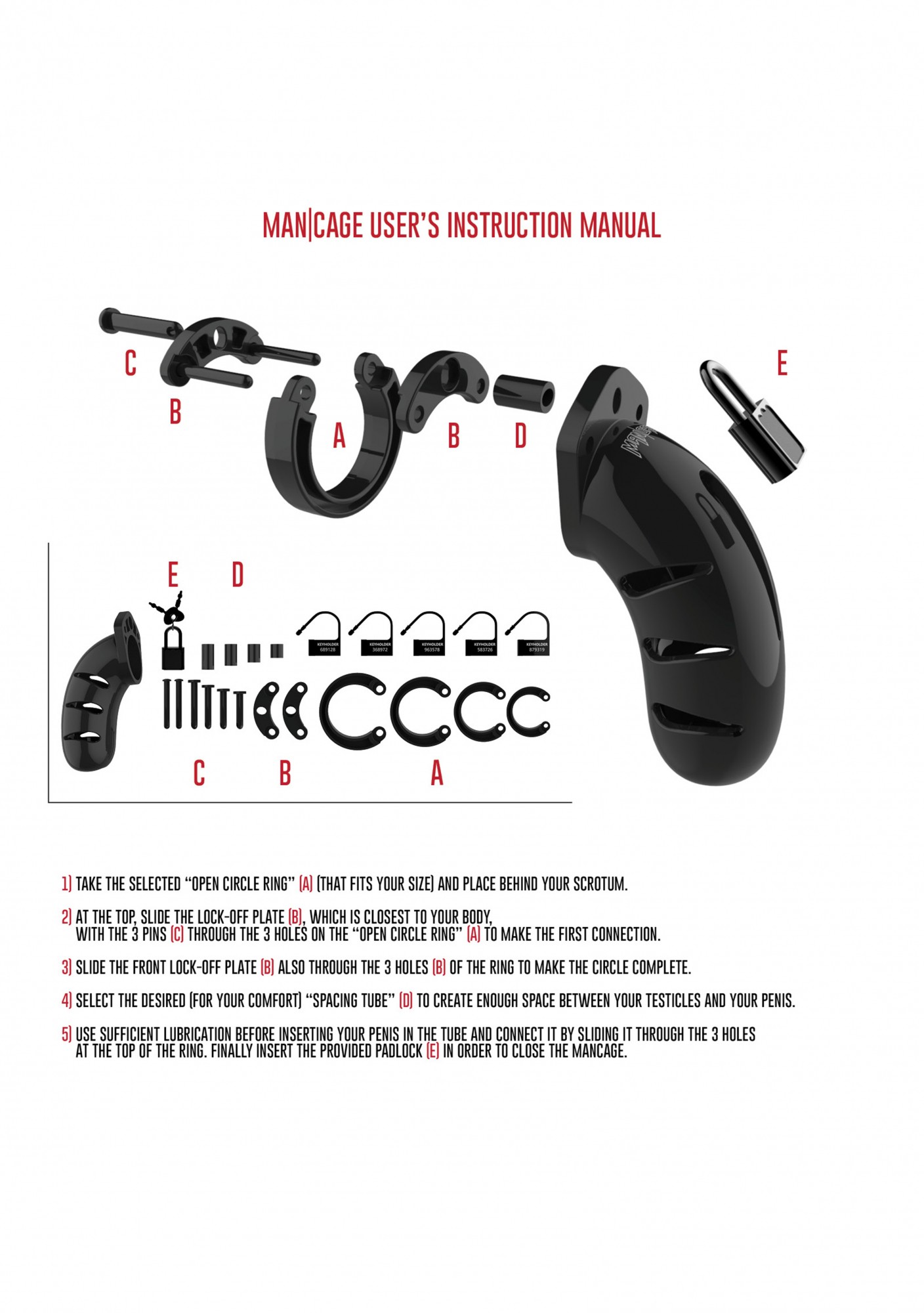 Cette cage de chasteté de la marque ManCage est un accessoire masculin qui permet d’enfermer le pénis.Elle est idéale dans le cadre des jeux SM – beau sextoy de soumission. Elle est réalisée avec: une longueur de 11cm un diamètre intérieur de 3.5cm 4 anneaux de fixation de diamètres allant de 45 à 60mm un cadenas métallique et des fermetures numérotées. Le sexe n’est pas serré
