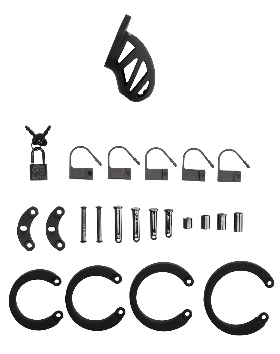 Cage de chasteté avec une longueur intérieure de 6.5 cm. Le diamètre intérieur est de 3.5 cm.Avec des scellés numérotés et un cadenas. Avec 4 anneaux de maintien dont les diamètres sont de 45 mm, 50 mm, 55 mm et 60 mm. En silicone