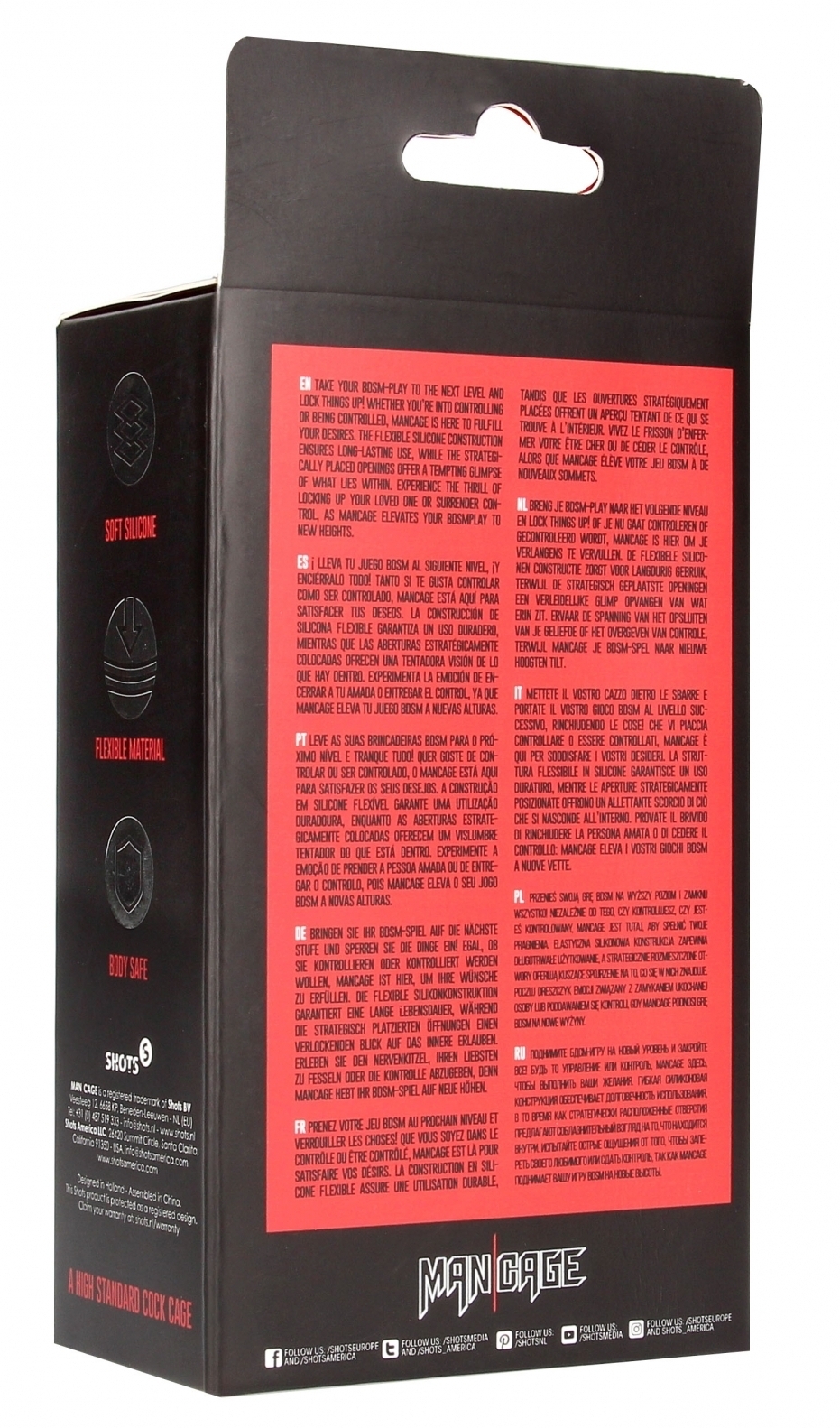 Cage de chasteté avec une longueur intérieure de 9.6 cm et une largeur intérieure de 3.5 cm.Matière souple silicone.Maintien au niveau de pénis et au-dessus des bourses.