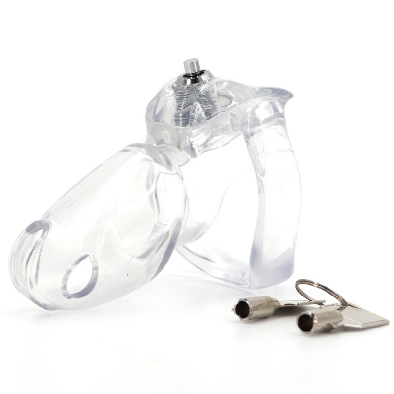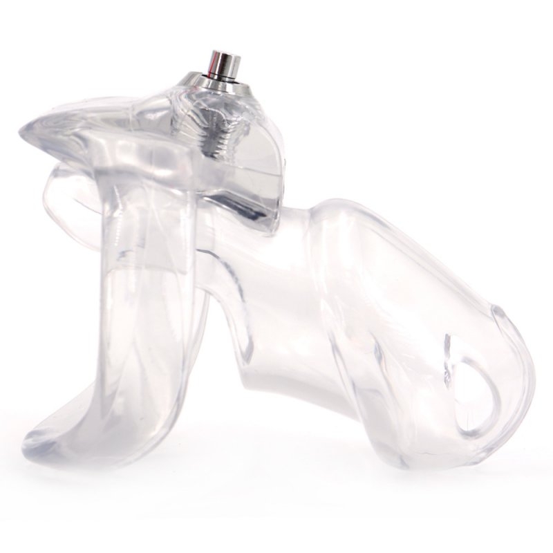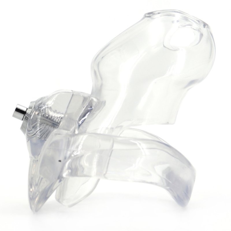 Cage de chasteté transparente rigide pour contraindre votre partenaire. Longueur de 8 cm. Largeur de 3.3 cm. En plastique ABS rigide.