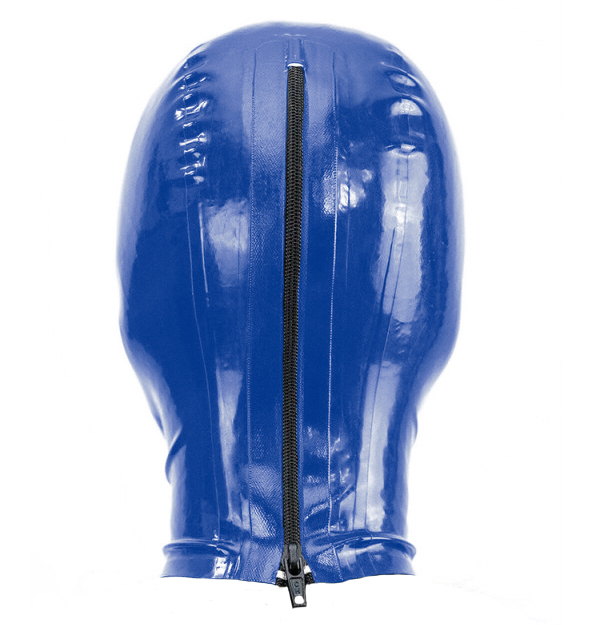 Cagoule facile à enfiler grâce à son zip à l’arrière. Ouverture pour la bouche, le nez et les yeux. En latex