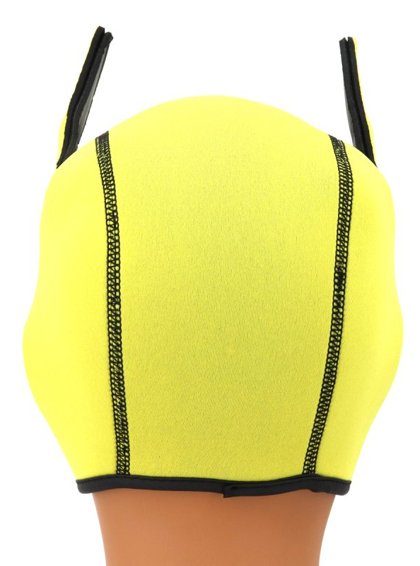 Cagoule jaune et rouge avec les oreilles articulées et le museau amovible.Matière néoprène confortable.Tour de tête de 58.5-61 cm.