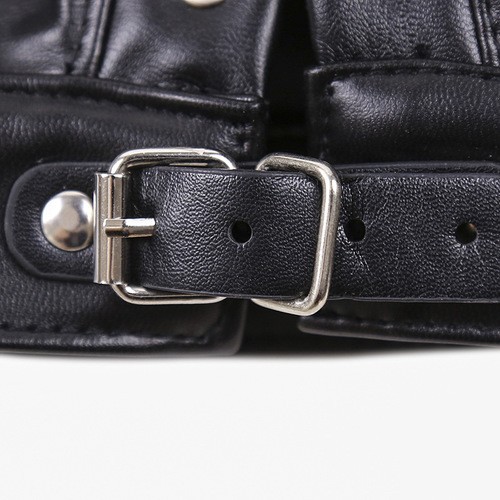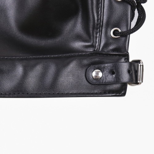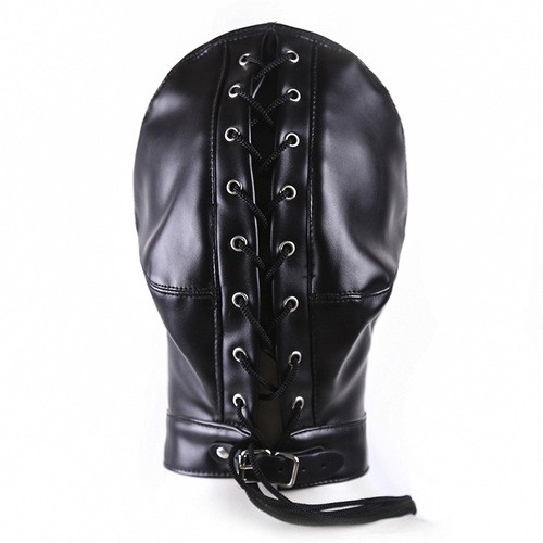 Cette cagoule est réalisée en Faux Cuir de PVC.Elle recouvre l’intégralité de la tête avec 2 trous au niveau du nez pour la respiration.Elle se fixe à l’aide de cordons à l’arrière et d’une boucle métallique