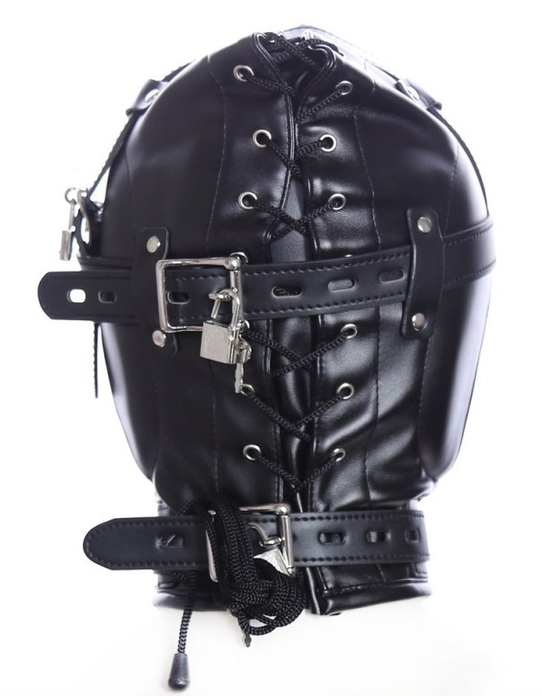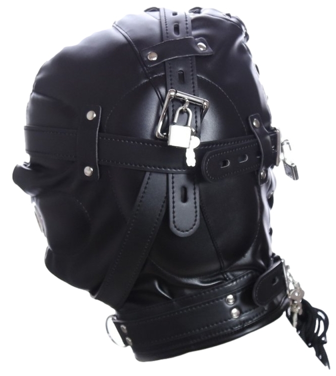 La cagoule Sm No Sensor noire est idéale pour les moments de soumission.Elle a du rembourrage sur les oreilles et sur les yeux.Un trou est présent au niveau de la bouche. Avec des sangles et des cordons ajustables atour de la tête. En simili