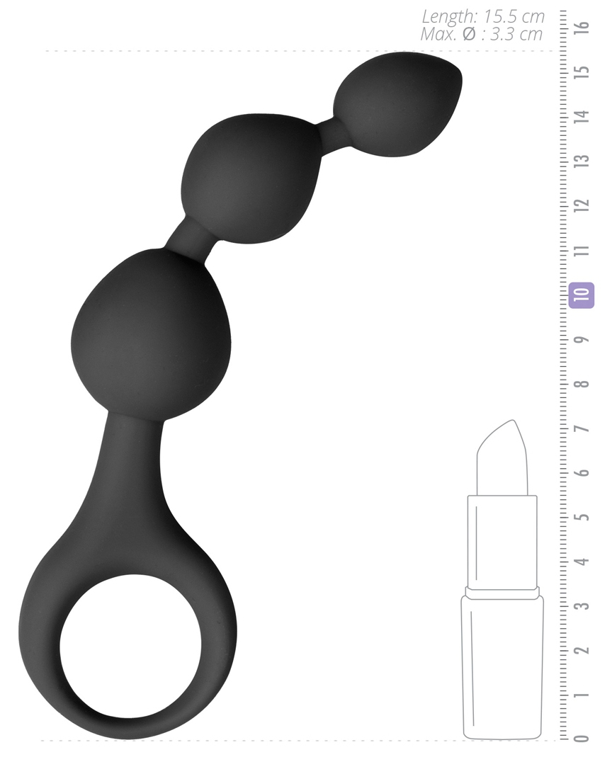Ce chapelet anal est composé de 3 boules dont la largeur va de 1.8 à 3cm. Idéal pour une insertion progressive et agréable.La longueur insérable est de 11cm. Avec un anneau qui facilite le retrait et le jeu. En silicone