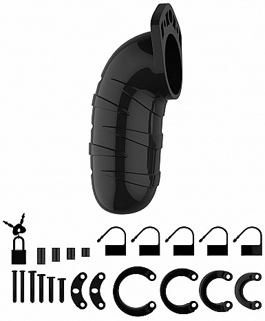Cette cage de chasteté de 14 cm de long est un accessoire pour le pénis. Il permet de limiter l’érection du partenaire.La forme courbée permet un port confortable. La largeur intérieure est de 4.5cm. Elle est idéale pour les moments de soumission.Elle est livrée avec 4 anneaux de fixation avec des diamètres allant de 45 à 60mm. Avec cadena et fermetures uniques. En polycarbonate