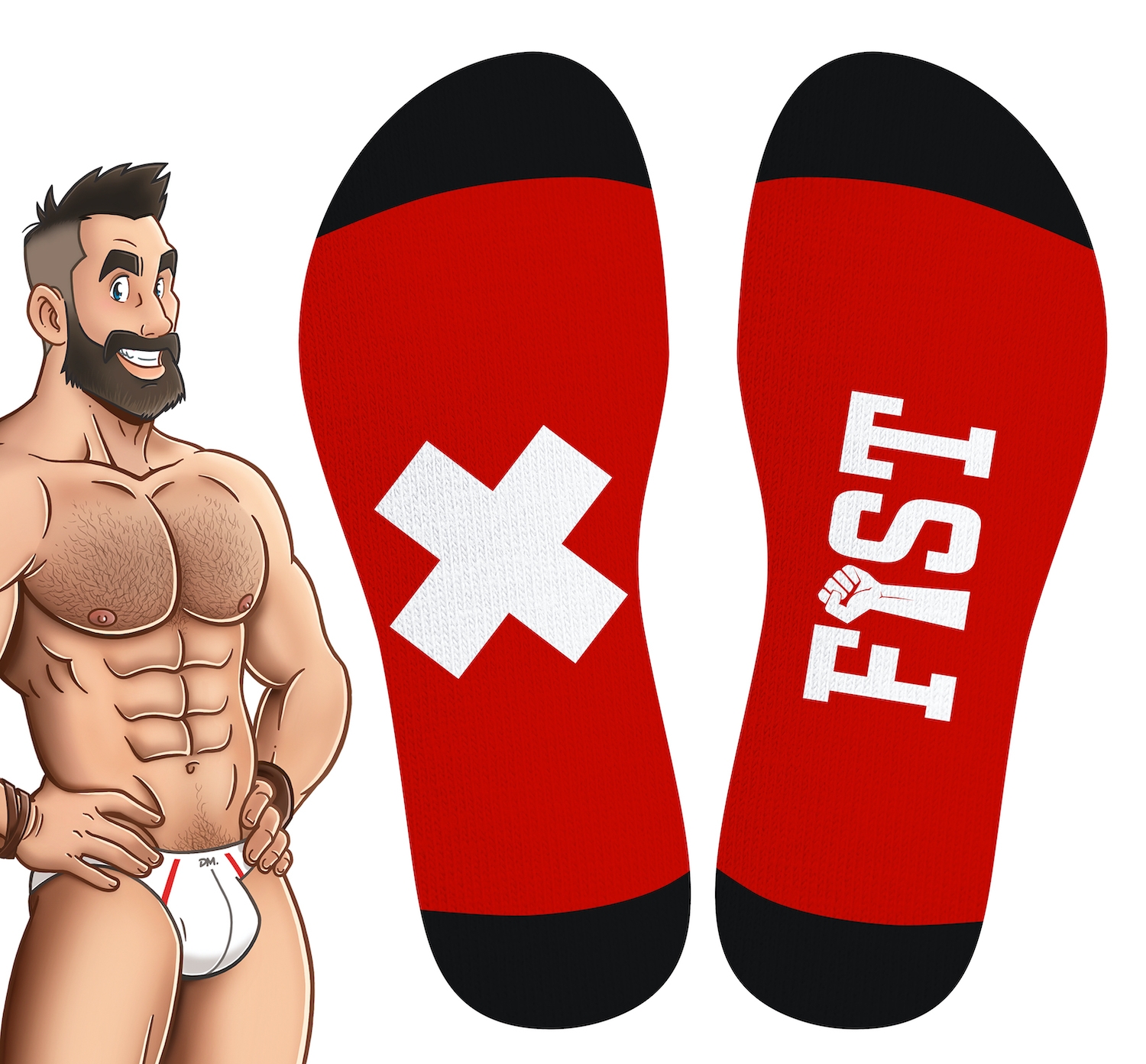 Les chaussettes hautes HANKY FIST de la marque SneakXX sont ici dans leur version rouge avec : le X de la marque sous un des pieds le mot FIST sur les côtés et sous un des pieds. Elles sont idéales pour apporter un look fetish et montrer ses préférences dans les pratiques sexuelles… Composition : 85% Coton, 10% Polyamide, 5% Élasthanne