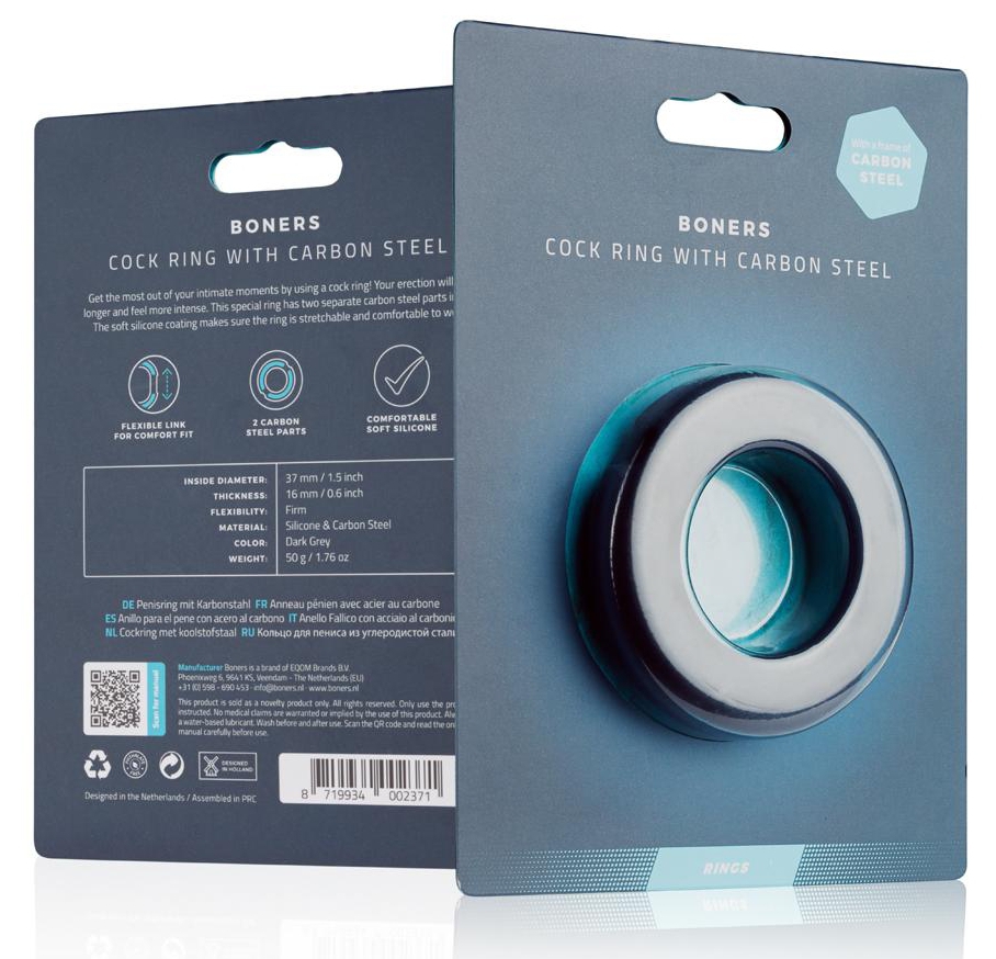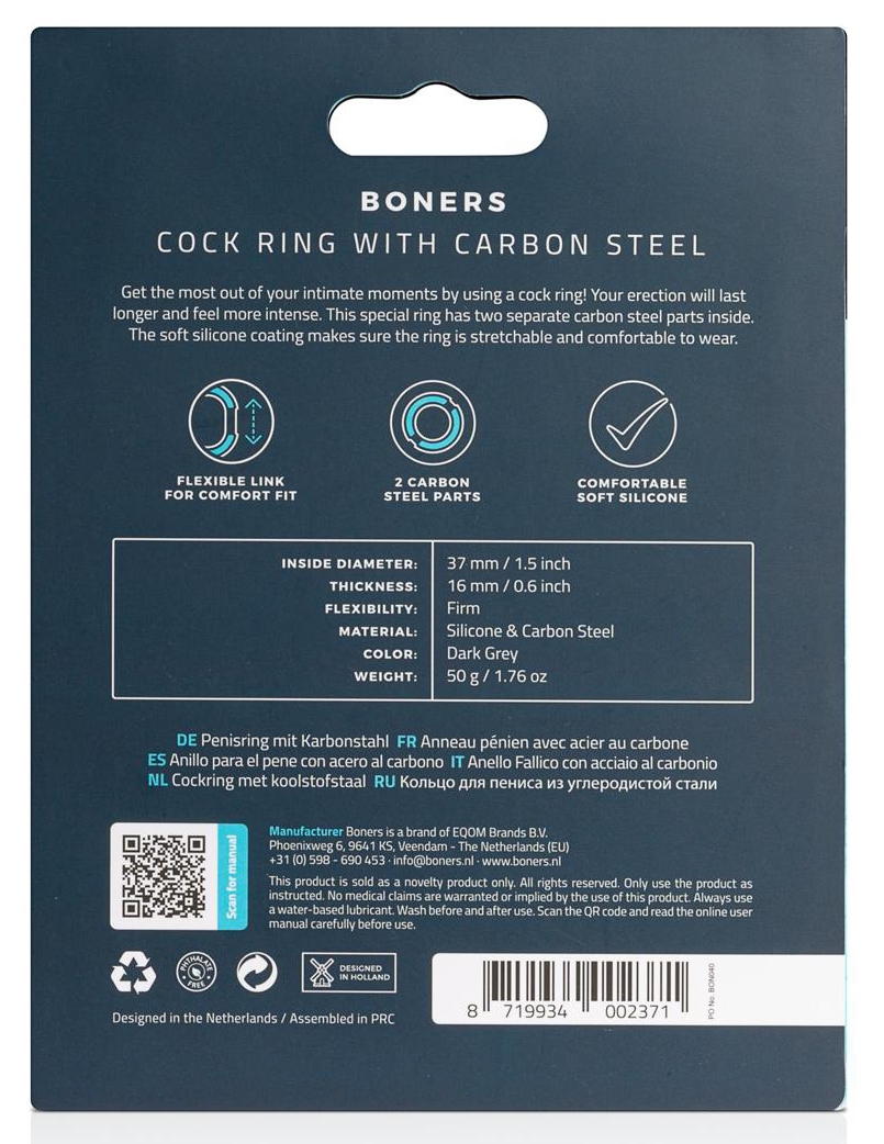 Ce cockring Carbon Steel est proposé par la marque Boners. Il s’agit d’un accessoire permettant d’assurer un serrage et une pression à la base du sexe. Cela rend l’excitation soutenue. Il est fabriqué en silicone avec une armature en métal à l’intérieur.Diamètre intérieur de 37mm. Largeur de 16mm. Poids de 50 grammes