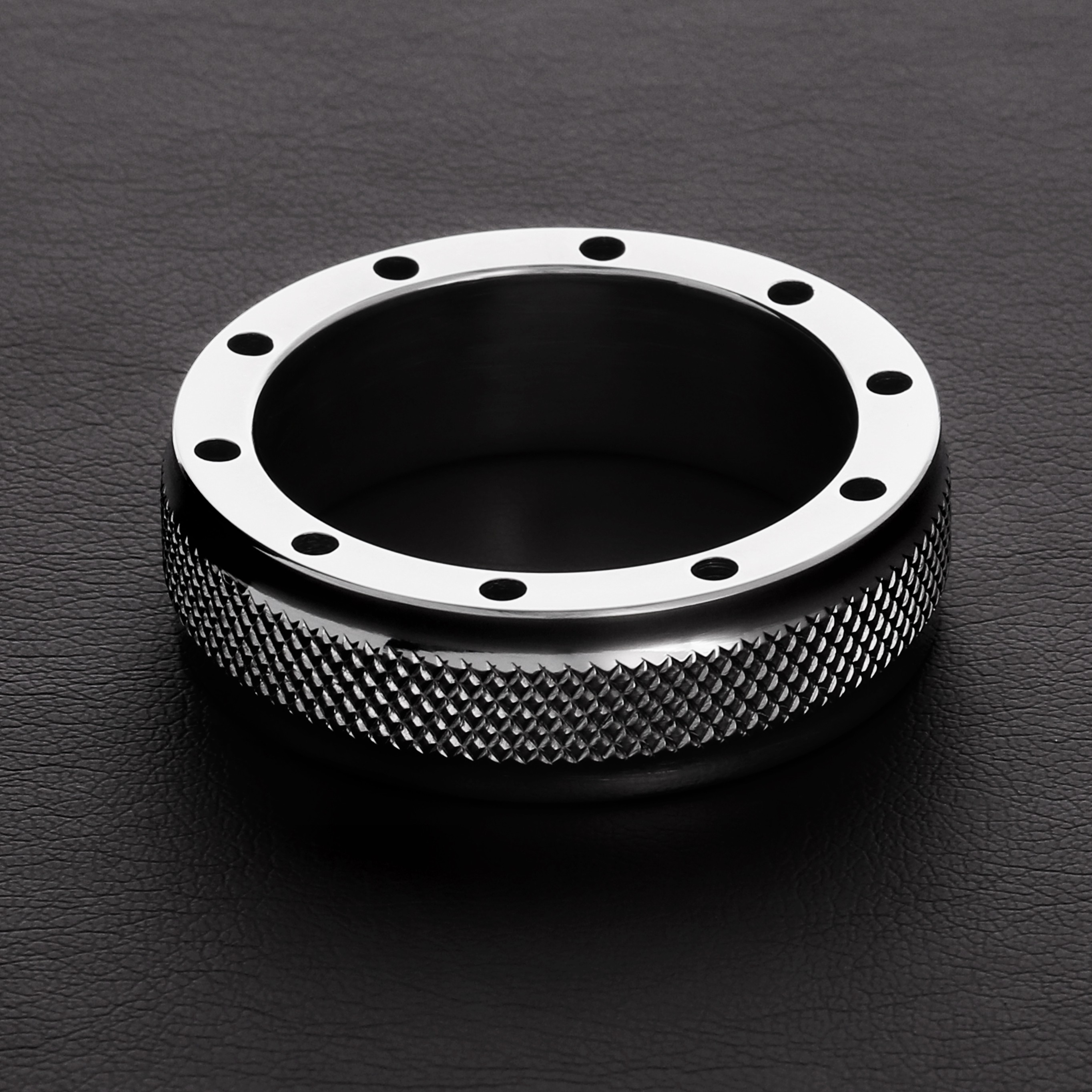 Le cockring Cool and Knurl de la marque Triune est un anneau en métal de 15mm de large avec 4 tailles de diamètres différents.Il possède une forme avec 10 trous pour l’élégance et l’aisance.Le dessus possède un relief en stries et croisillons