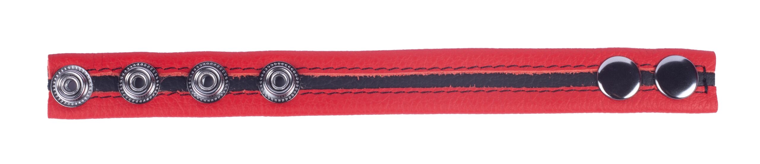 Ce cockring en cuir Tippy est ici dans sa version rouge et noir. Il permet de renforcer l’excitation en serrant la base du pénis.Avec des pressions en métal pour ajuster le diamètre de serrage.Le diamètre maximal est de 60mm. La largeur est de 2.3cm. Fabriqué en cuir véritable de vache. Tannage végétal.Fabriqué en Europe