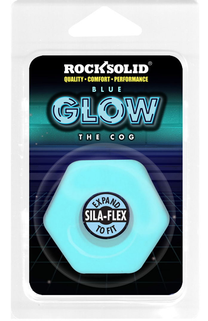 Cockring phosphorescent bleu avec une forme d’écrou.Avec un diamètre intérieur de 22 mm légèrement étirable.Épaisseur de 15 mm.