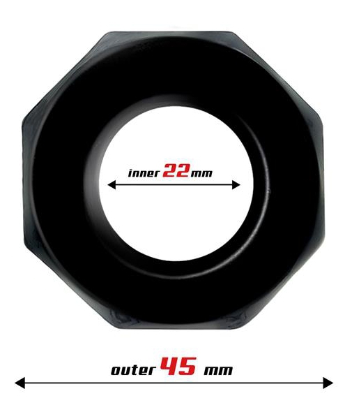 Ce cockring souple de la gamme Polygon est ici dans sa version Noire. Il permet de renforcer l’érection en se plaçant à la base du pénis. La forme en écrou lui donne du style. Le diamètre intérieur est de 22mm étirable. Fabriqué en TPR souple