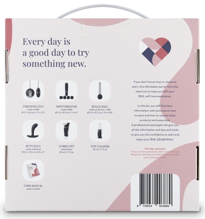 Ce coffret est composé de 4 accessoires idéals pour se faire plaisir en solo : un oeuf vibrant de 6.4 x 2.7cm un mini vibro de 10.5 x 2.5cm une boule vaginale de 3.5cm de diamètre un plug en silicone de 7.5 x 2.2cm. Avec un lubrifiant et un nettoyant pour les sextoys