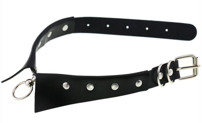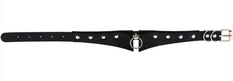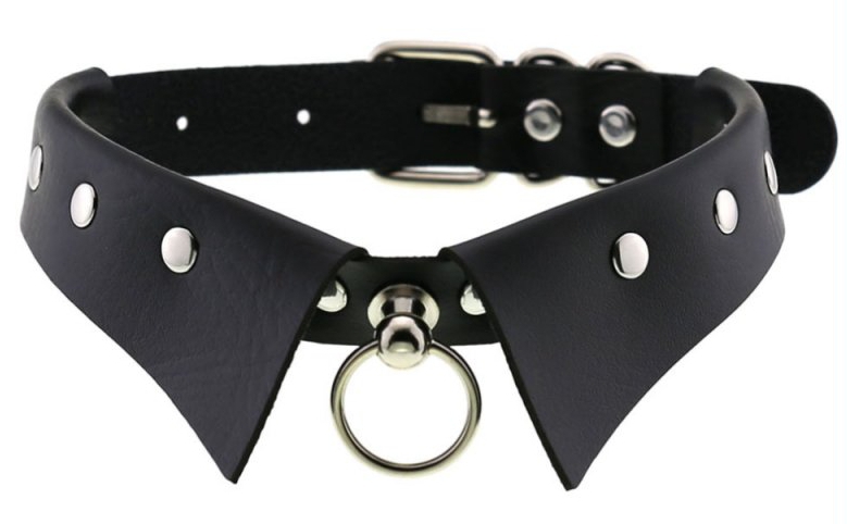 Collier avec une forme de col de chemise.Anneau en métal à l’avant.. Tour de cou allant de 34.5 à 44cm. En simili (polyuréthane)