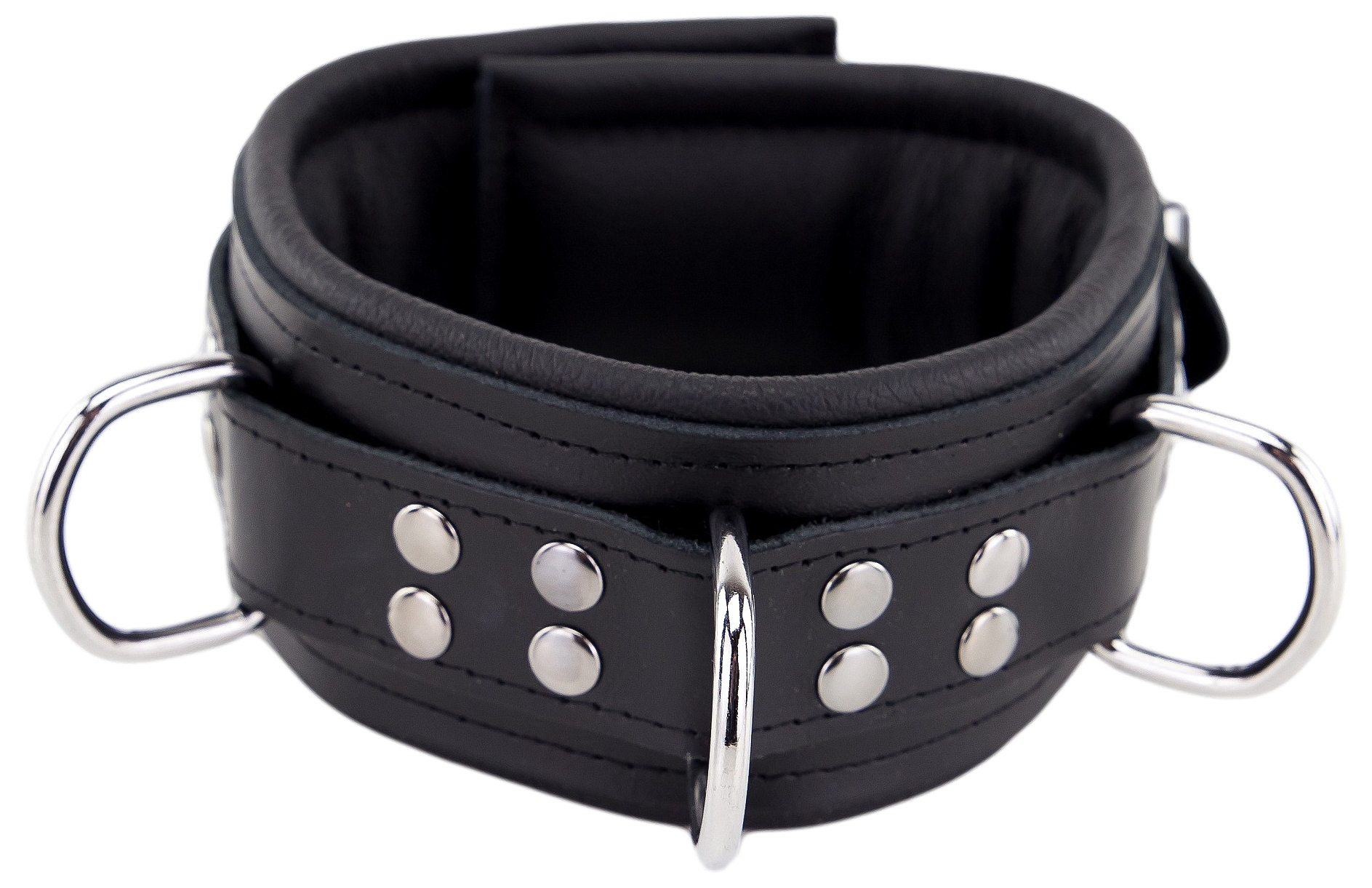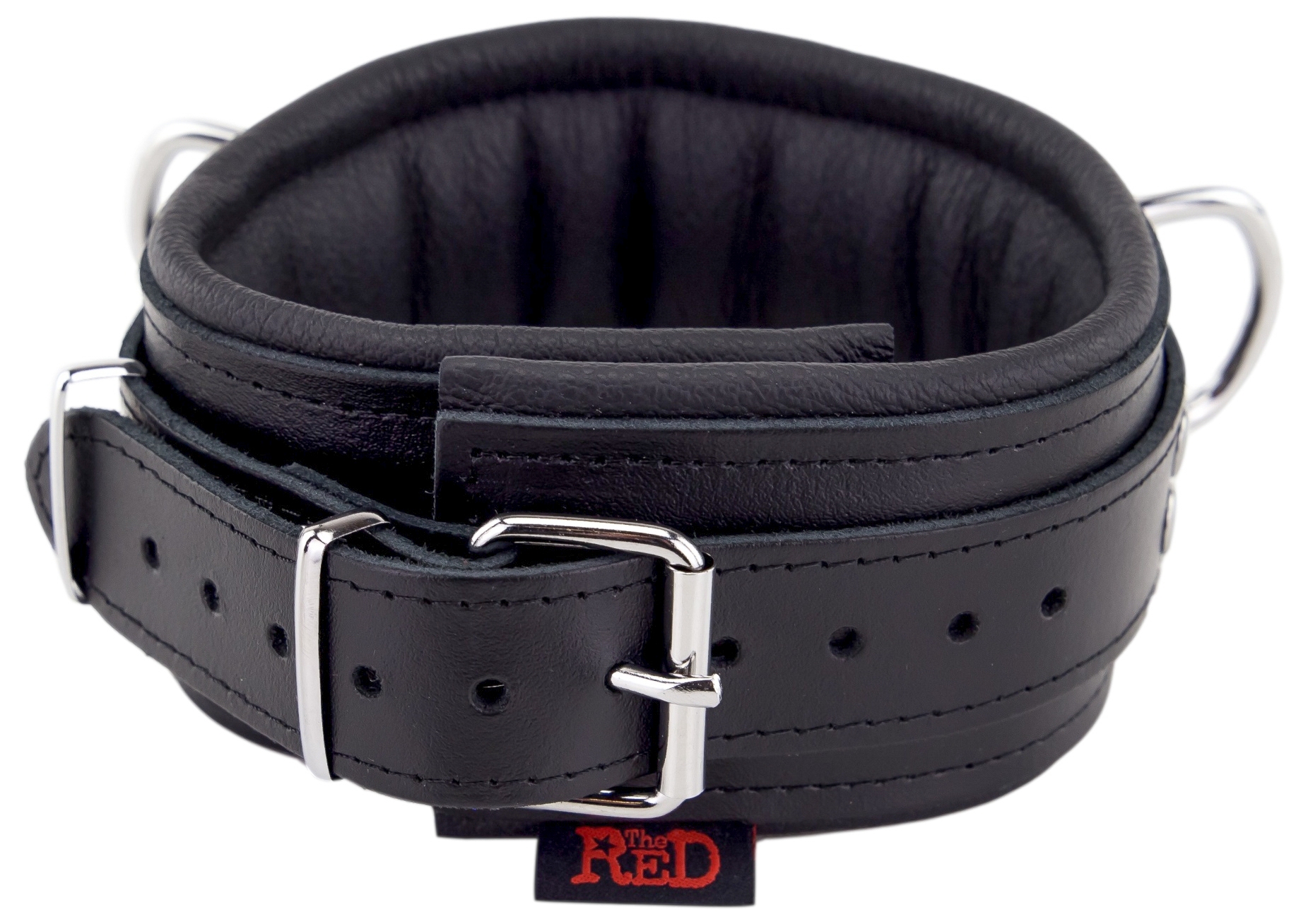 Ce collier rembourré de la marque The Red est un accessoire Sm en cuir composé de 3 anneaux en métal. Ils permettent de mettre des chaînes et augmenter le jeu sexuel.Le collier mesure 6.5cm de large et la longueur est de 46cm ajustable