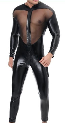 Tissu tulle fine noire et le contraste avec un tissu imitation Vinyle.Taille petit Composition : 90% polyester 10% élasthanne