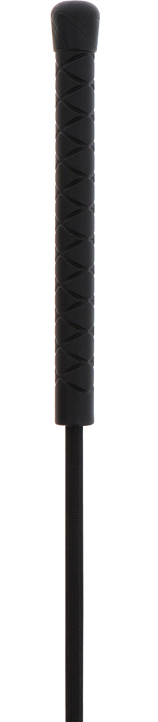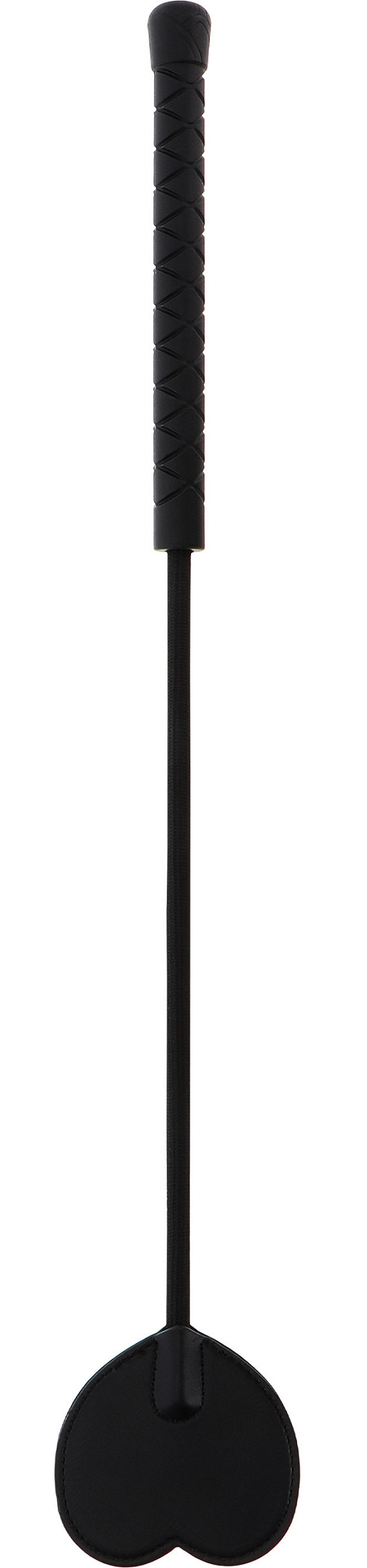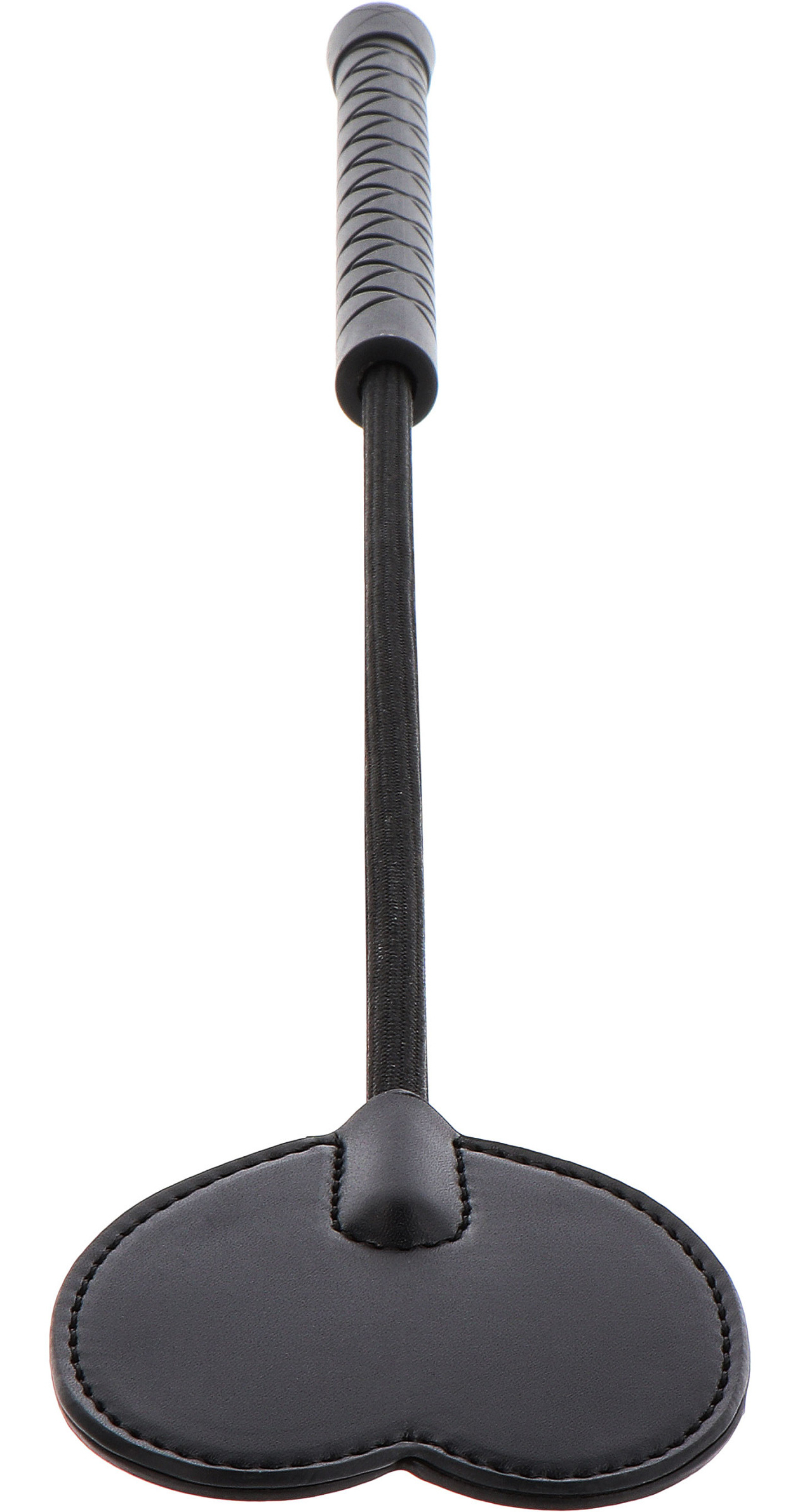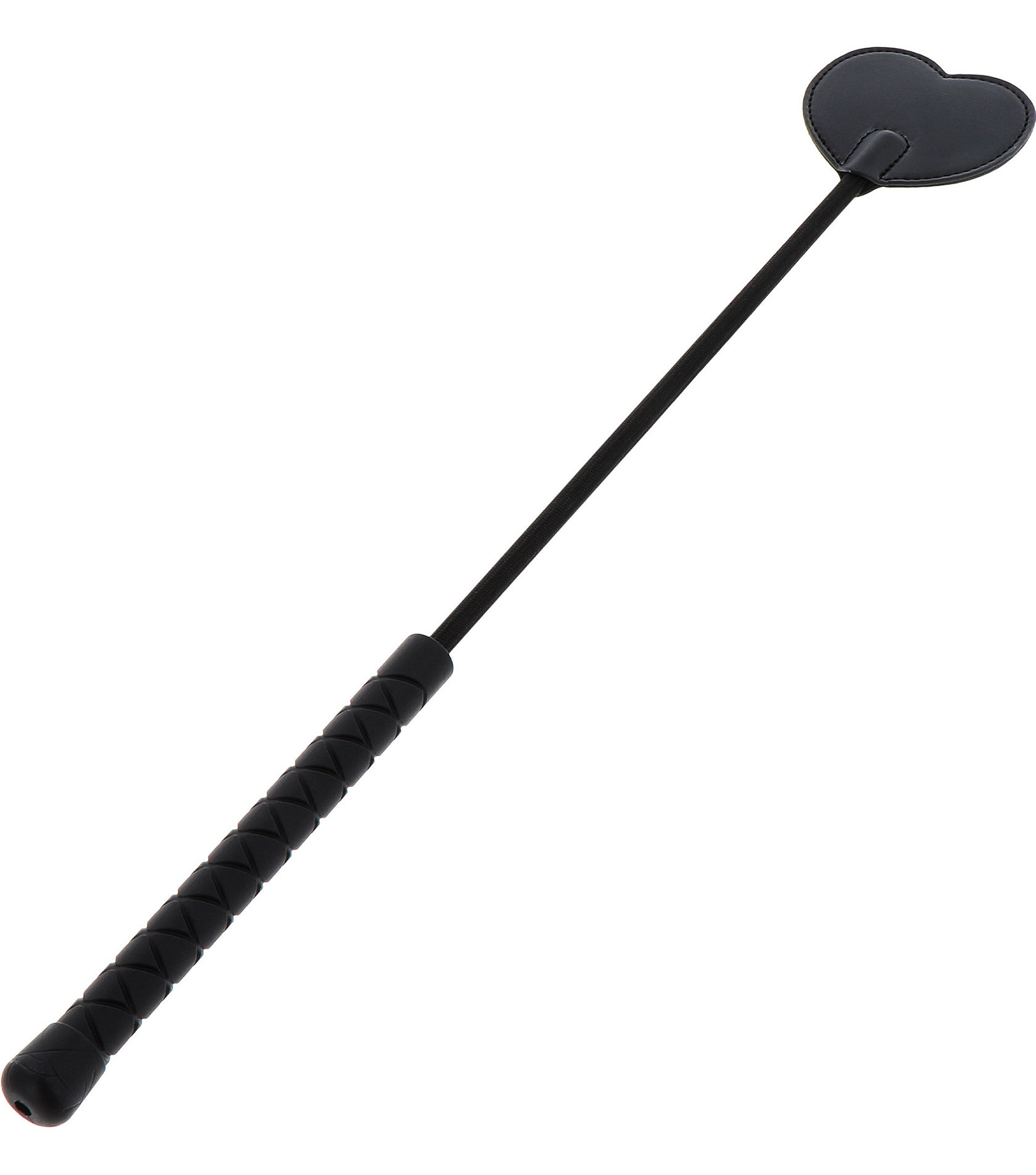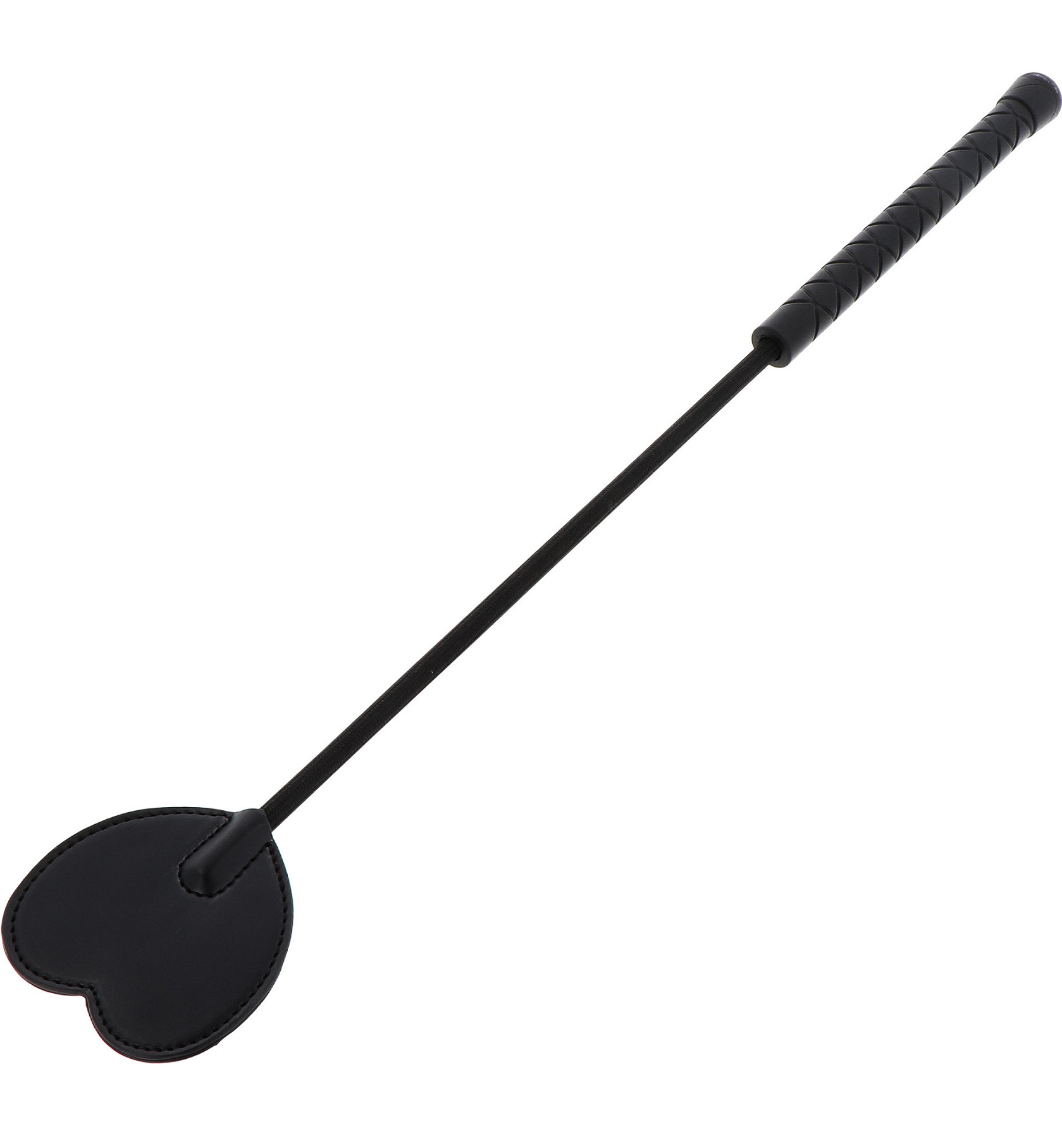 Cravache avec un manche et une tige rigides. Partie souple en forme de coeur de 7 cm par 7 cm. En simili noir.