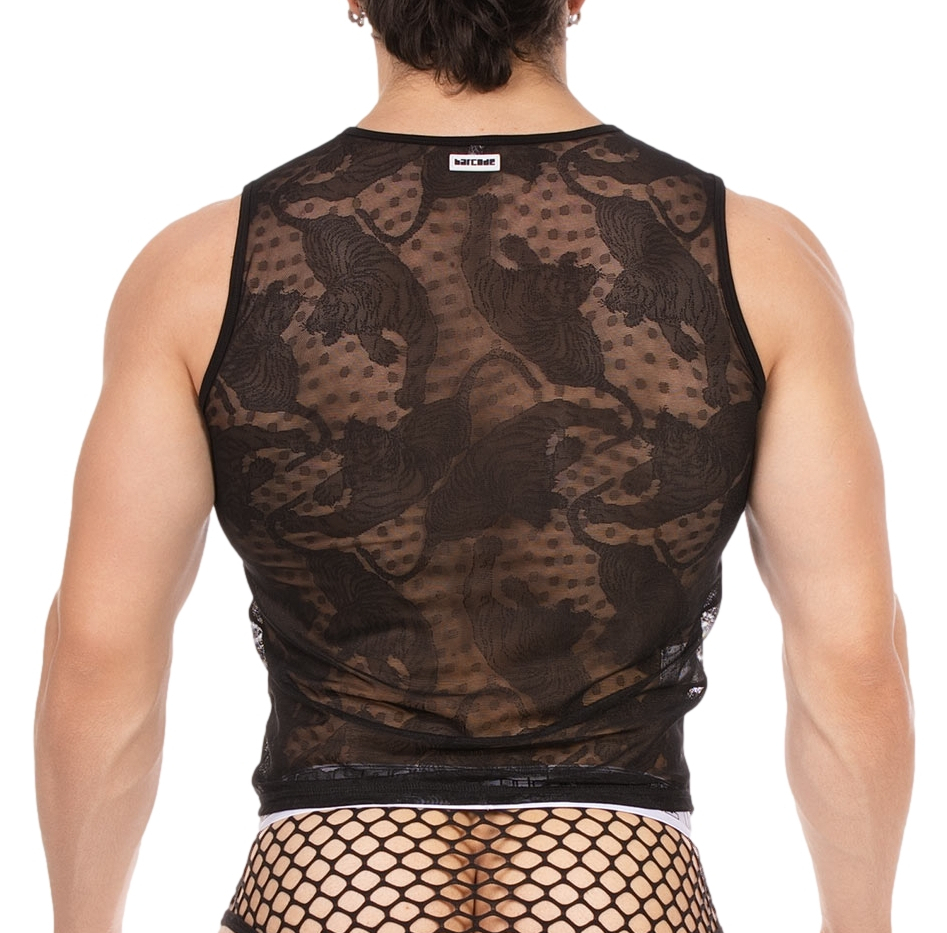 Tissu en dentelle avec un motif Tigre. Composition : 80% Polyamide, 20% Élasthanne
