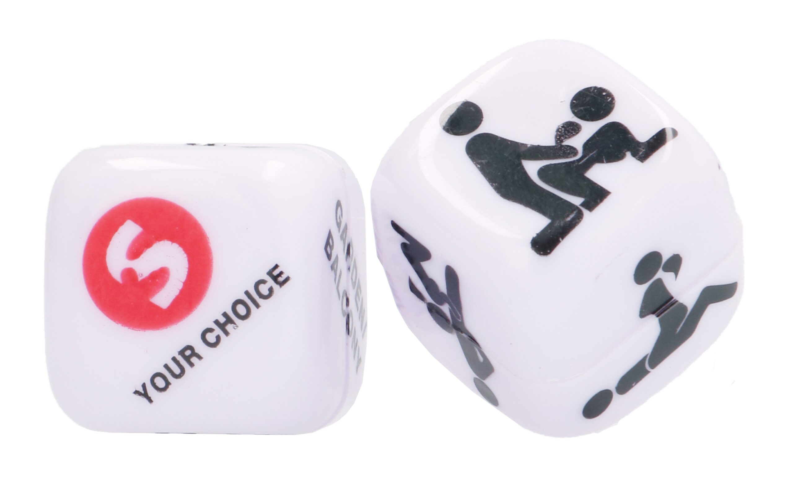 Ces dés érotiques « Take the Gamble » sont idéals pour donner plus de piment aux moments intimes.En effet, ils permettent de laisser le sort choisir quelles actions réaliser et où … Un des dés possède les positions sexuelles et l’autre a les endroits de la maison (sous la douche, dans la cuisine, …) En anglais