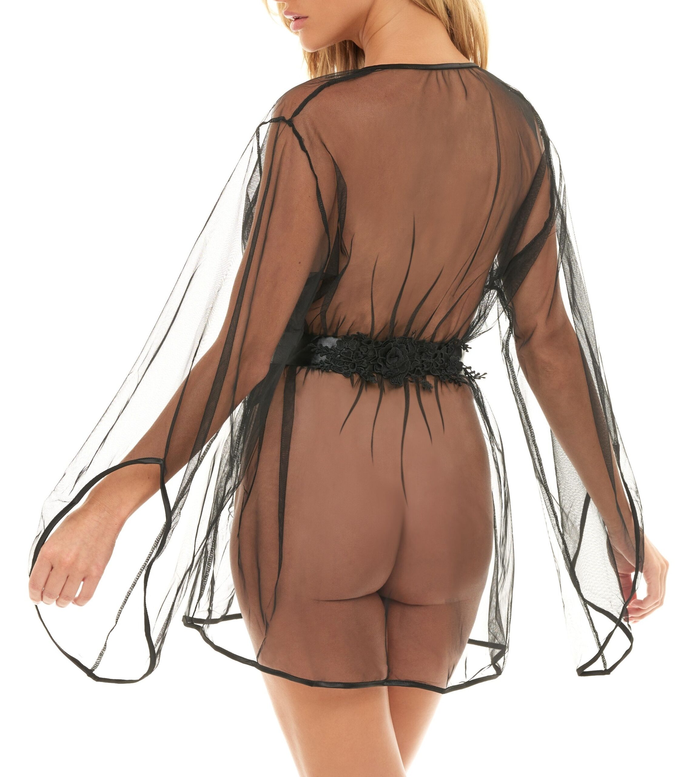 Déshabillé en tulle à manches larges, applique brodée au dos et ceinture en satin fonctionnelle attachée Composition : 100% Polyester