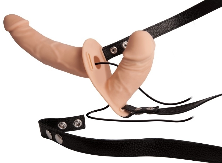Double gode ceinture vibrant avec 10 modes de vibrations. Gode extérieur : longueur insérable de 17 cm et largeur de 4 cmGode intérieur : longueur insérable de 9 cm et largeur de 4 cmHarnais réglable de 80 à 110 cm En simili et silicone, couleur chair.