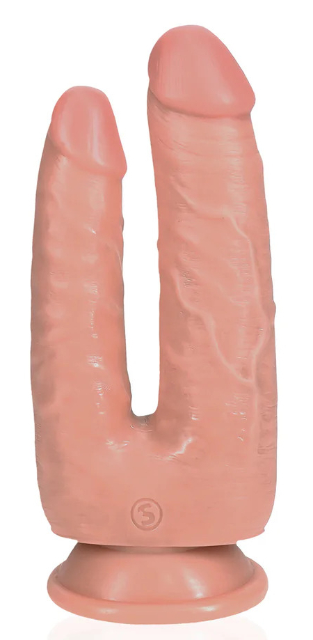 Double gode pour une double pénétration Surface veinée avec une base ventouse Longueur maximale 15 cm et largeur maximale 4.5 cm Godes en PVC