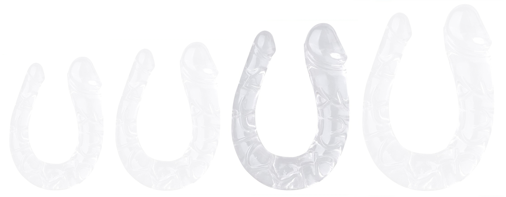 Le Double gode U Jelly L est un sextoy transparent composé d’une forme en U et d’une structure souple.La surface est veinée. Les deux extrémités ont des largeurs de 2.5cm et 4.5cm. La longueur insérable est de 17cm (40cm déplié). En matière TPE