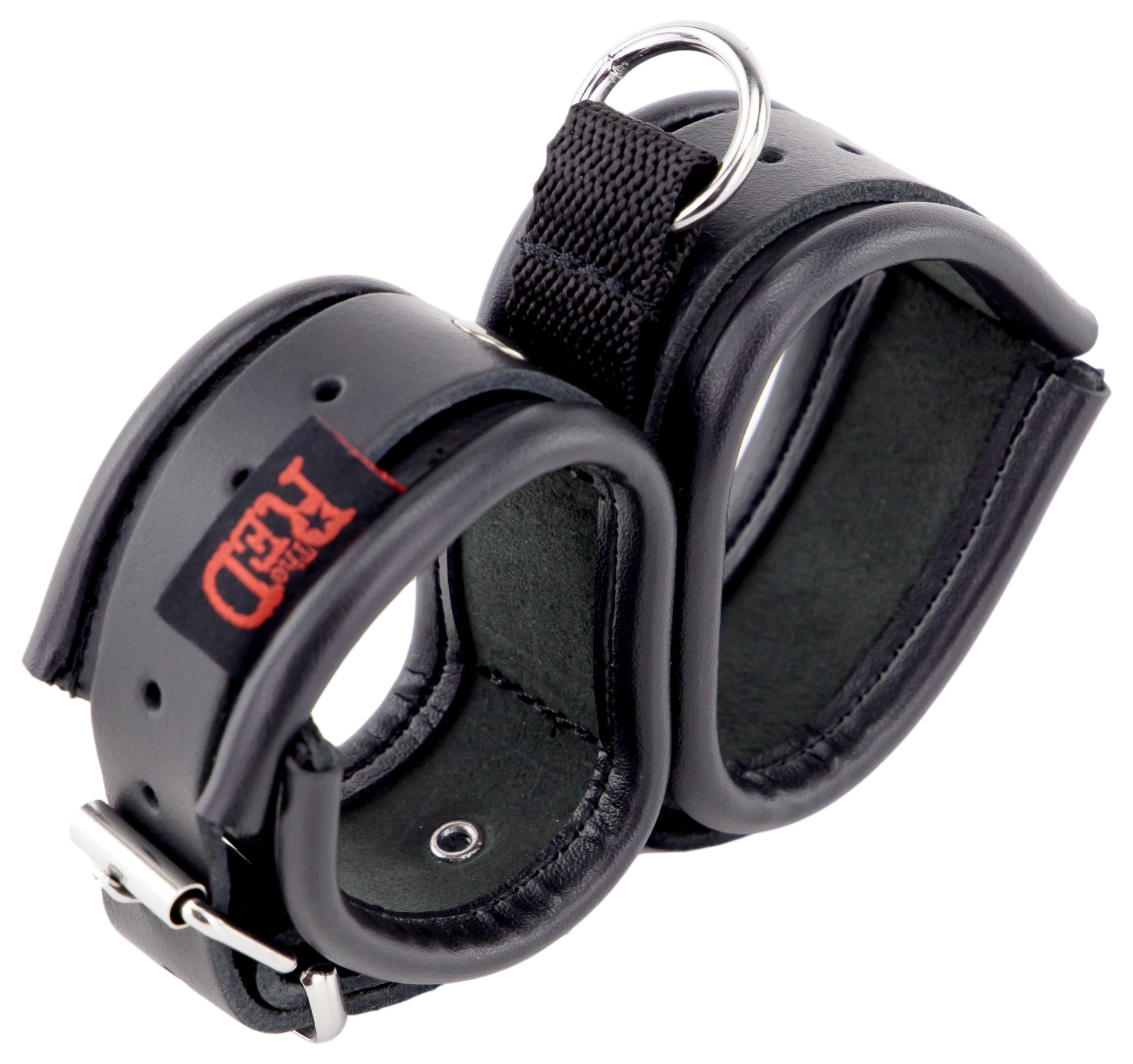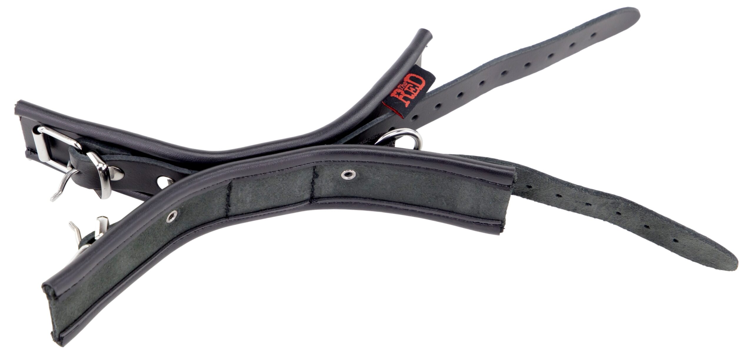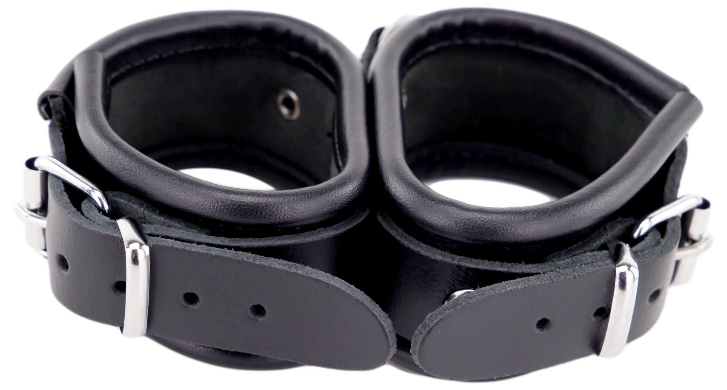Double menotte de maintien en cuir avec sangle tissu et anneau métalCuir de haute qualitéTannage végétal Fabriqué en Europe