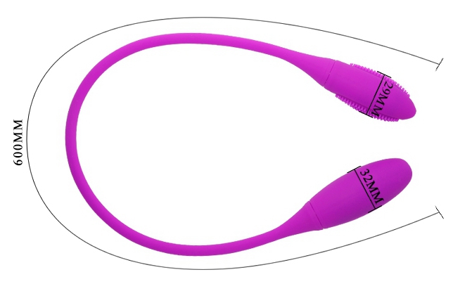 Ce sextoy est composé de deux oeufs en silicone reliés entre eux pour des jeux en solo ou à 2. Il possède des possibilités d’insertion variée pour multiplier les plaisirs. L’un des oeufs possède une surface en « picots » qui viennent donner des sensations supplémentaires, notamment en frottant contre le clitoris ou lors de l’insertion. 7 modes de vibrations. Longueur de 60cm. Largeur de 3cm